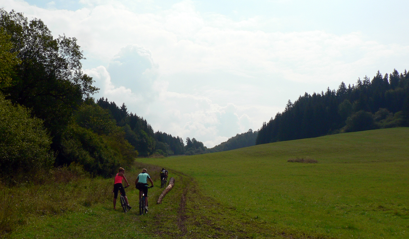 Aj je - v doline samozrejme super, aj cyklotrasa je tu natiahnutá, aj prístrešok pre výletníkov, dokonca s „parkovacími brvnami“ pre bajky. Len nechápem, prečo cyklotrasa končí už hore v doline, keď ďalej na Mažiarky, na krásne lúky nad dolinou, vedie parádna cesta. Presne tú využívam, a keď sa z lesného tunela vynáram na lúky, viem, že na dnes mám splnené. Dalo by sa ešte doľava dole do Jasenskej doliny, ale čas pokročil...