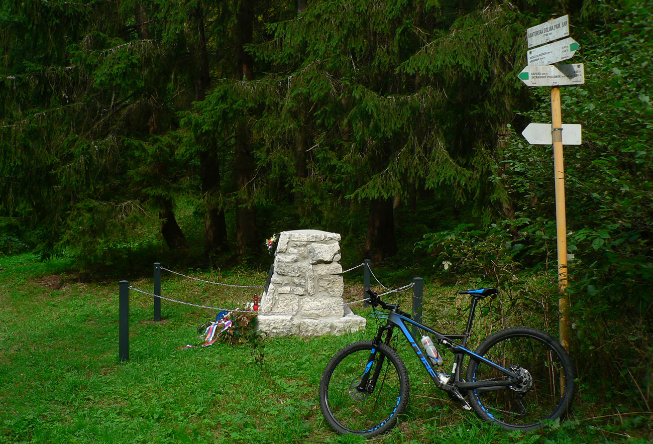 Keď sa žltá odpojí od zvážnice, je to už len asi kilák strmšieho stúpania. Potom hore – dole popod hrebeň. Pod Vyšnou Lipovou malé sedielko, lesácka chatka a odtiaľ už len dolu. Povrch cesty parádny, aj keď aj tu sa v okolí ťaží. Len trochu blata na drevosklade v závere v južnej vetvy Kantorskej doliny (tu sa napájam na zelenú značku) a o chvíľu už som pri pomníku SNP.