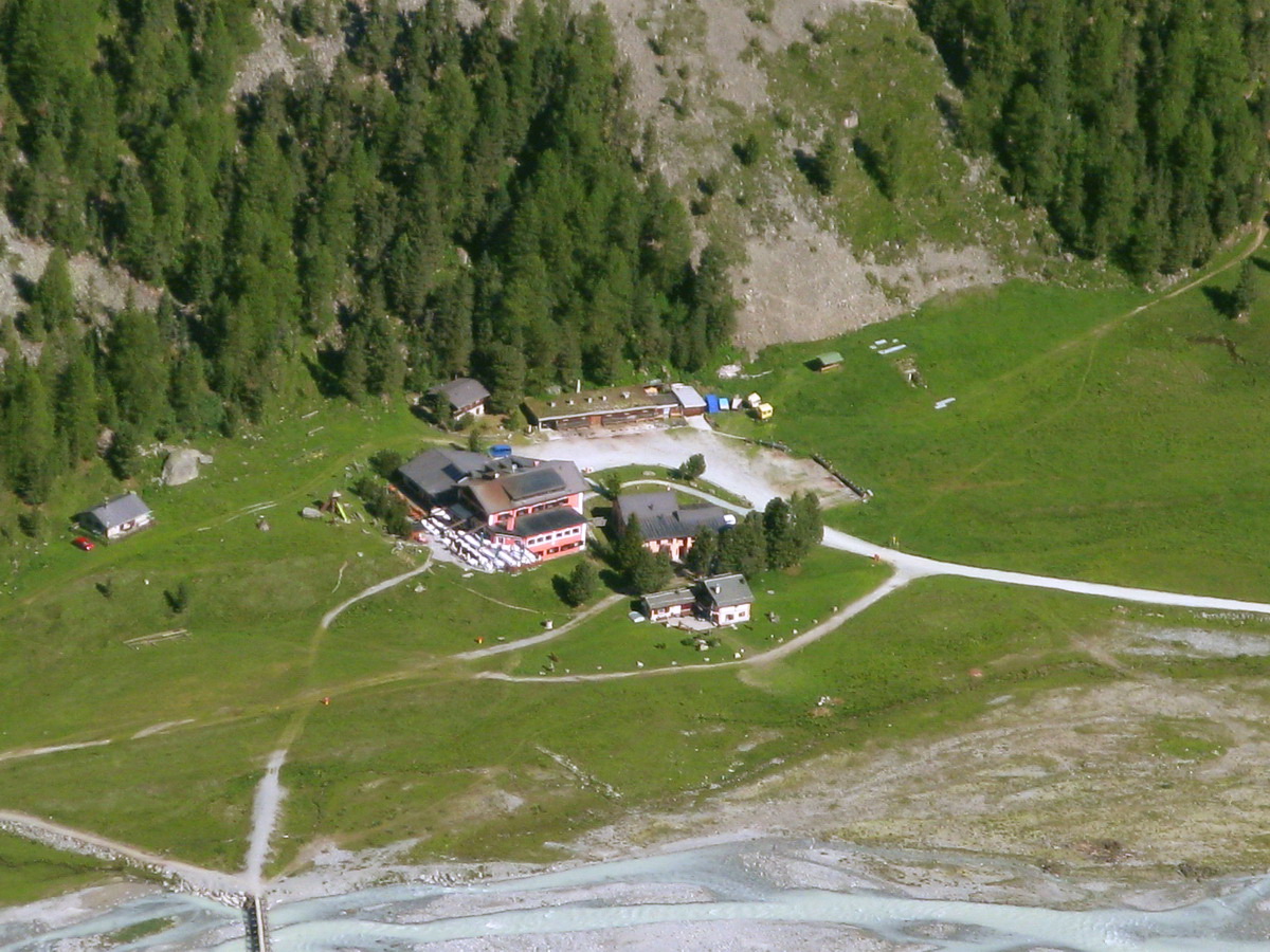 Tschiervahutte (2584m), rovnako ako aj nižšie položený Roseghaus (2000m) môžu však byť východiskom na výstupy na množstvo ďalších kopcov: Piz Roseg, Piz Scersen, Piz Caputschin... Najlepšie dostupný však asi bude už spomínaný Piz Tschierva. Nástup na túru je priamo nad rovnomennou chatou v smere výstupu na Biancograt. Cez skalnú stienku sa dostaneme pomocou reťazí a železných stupienkov. Po pár serpentínach sa chodník rozdeľuje: doprava na Berninu a ďalej smerom hore na Tschiervu a Morteratsch.