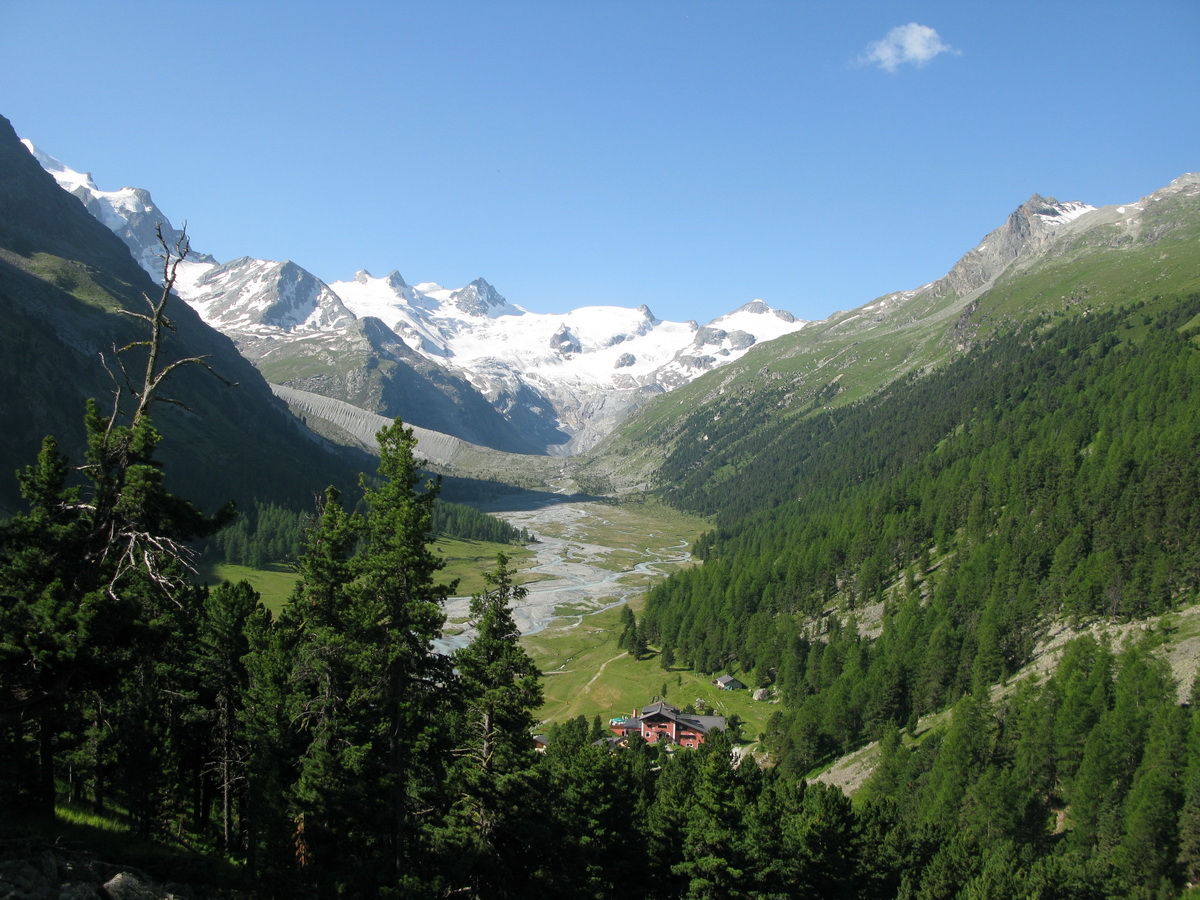 Bude tu veru čo robiť... Po výstupe na Tschiervu a Morteratsch som sa vrátil rovnakou cestou naspäť, ale dal by sa tu urobiť aj prechod na chatu Boval o jednu dolinu ďalej.