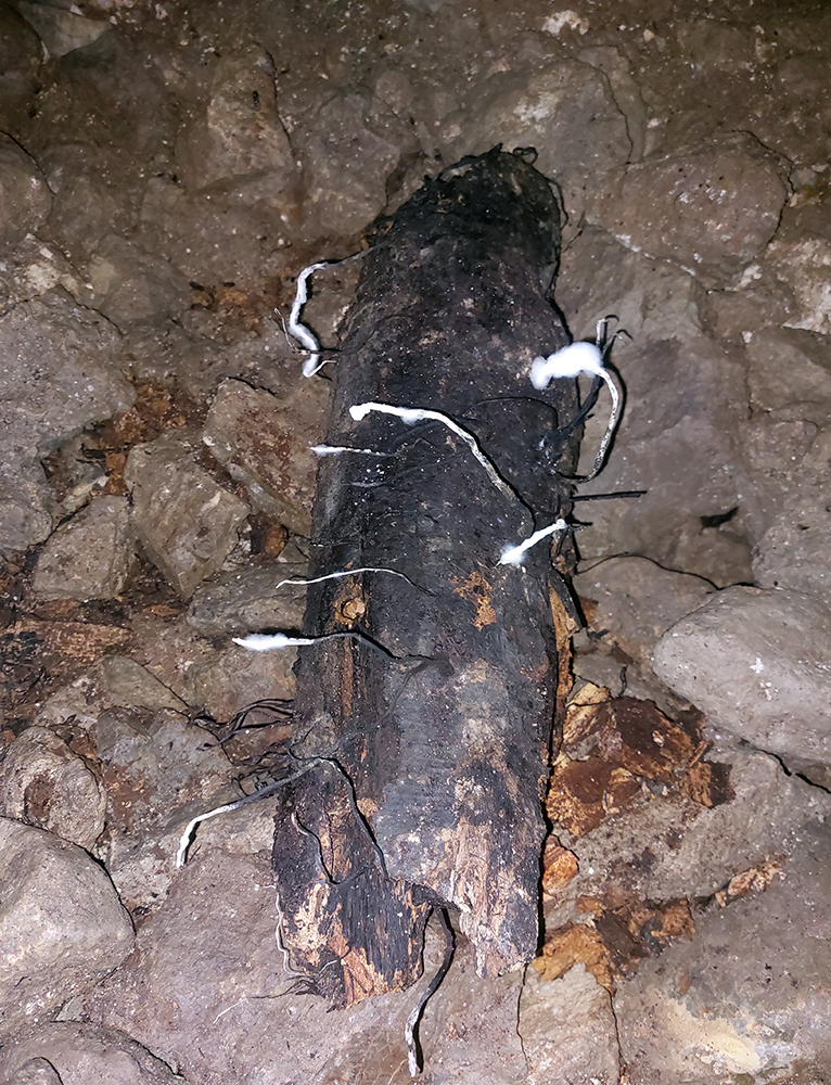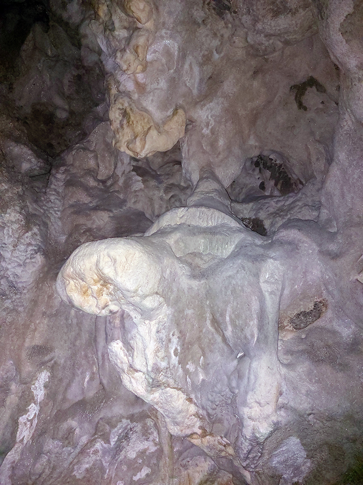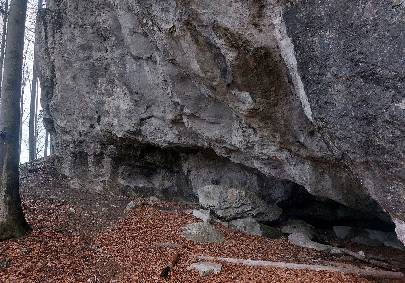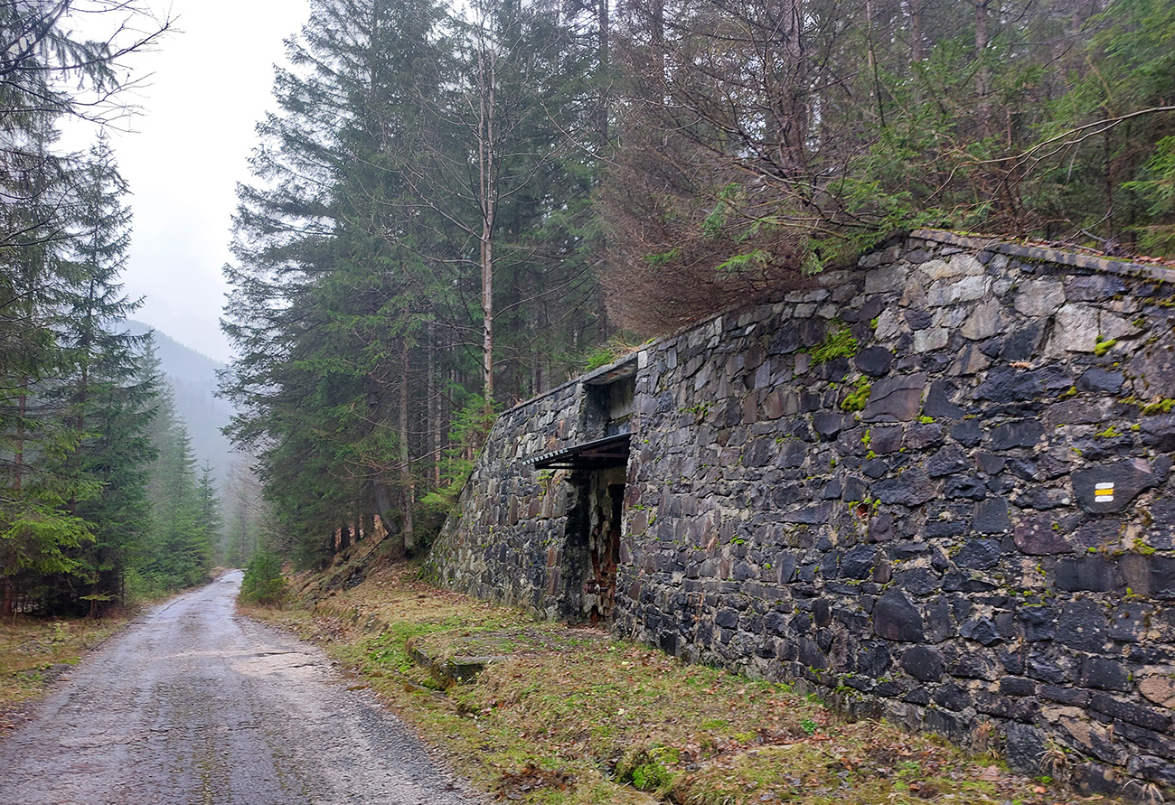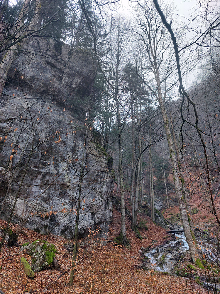 Dolina Túfna je najkrajšia na spodku. Najhrboľatejšia. Potom sa chodník dostane vyššie nad potok, potok zmizne a keď nastane zákruta doprava, treba sa obzerať po nezreteľnej odbočke k jaskyni. Vedie od bralka pri chodníku priamo popod steny k portálu jaskyne. Oplatí sa tam pomotať, aj dnu zájsť: