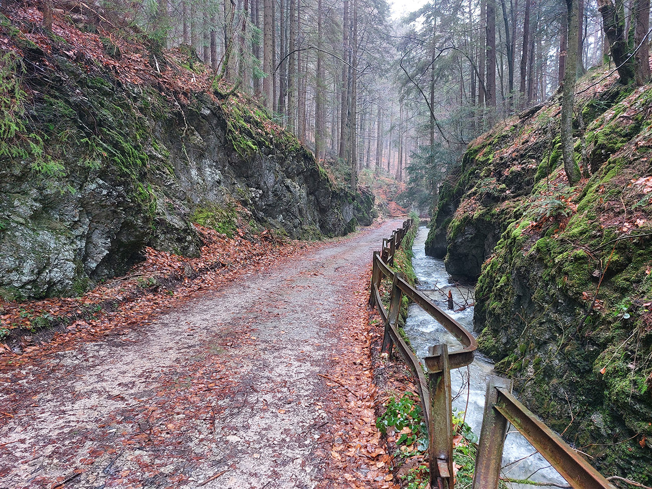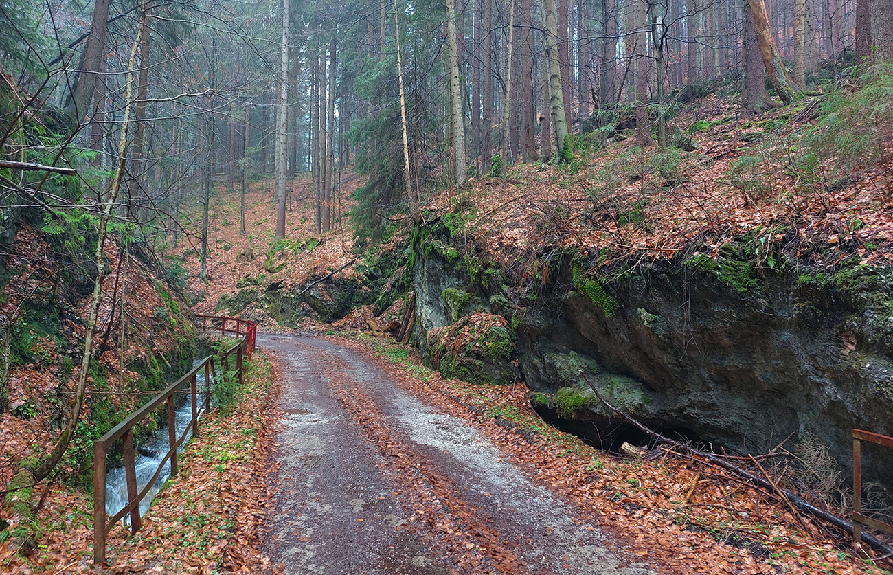 Žltá značka do doliny Suchý Rakytov nie je rýchly zbeh, lebo hore strmá hlina, nižšie hrboľatosť poriadna. Dokonca pár malých kaňonov, chvíľu dokonca potok po chodníku tečie. Dolu v doline veľa asfaltu, ale aj ďalšie krásne kaňony, taká malá Manínska tiesňava.