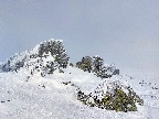 Popod Dereše je to riadny boj, chodník je v závetrí a vietor tu toho naukladal až - až. Pred sedlom Poľany stretám dvoch a neskôr ešte dvoch ľudí, všetci idú z Ďurkovej. Vraj je to ďalej celkom dobré, moc sa to neborí. Teším sa že konečne bude stopa, ale už pod Kotliskami je beznádejne zaviata. Asi dvakrát sa v mrakoch ukáže žlté koliesko, dáva nádej. Ale sneží čoraz hustejšie, len vietor našťastie fúka do chrbta.