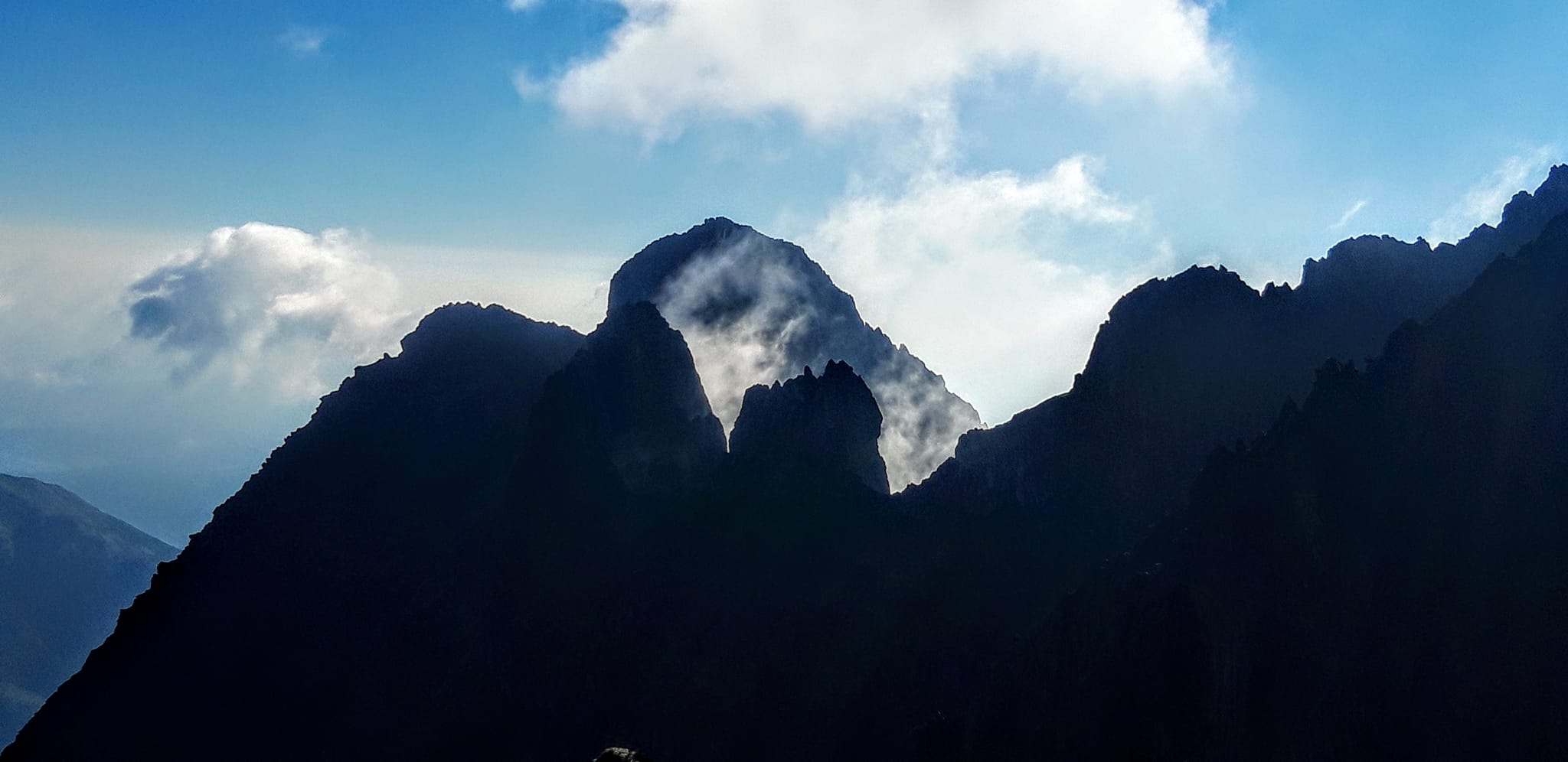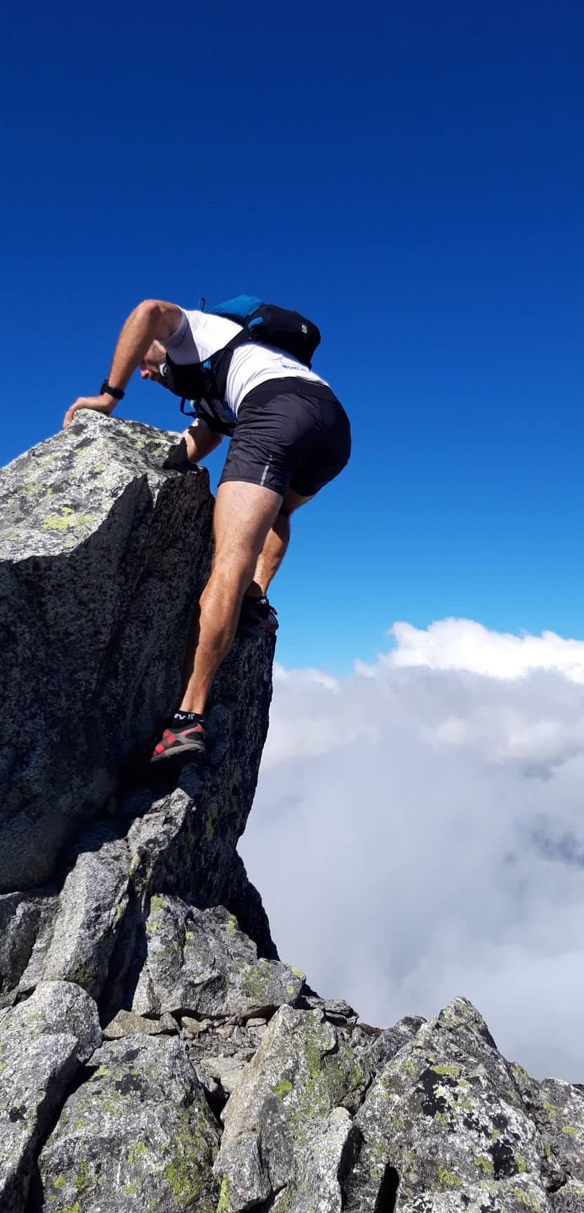 Konečne Gerlachovský štít . Kocháme sa výhľadmi . Pri pohľade na Lomničák nechápem ,ako som sa mohol odtiaľ dostať až sem . Keď však zbadám čo nás ešte čaká, prestanem sa rozplývať. Táto časť hrebeňa sa lezie veľmi málo. Musím sa nenormálne sústrediť, hlava mi už úplne vypína . Všade samé machy ,samé lokre . Stačí vybrať jeden osudový loker a čauky. Zachrániť ťa môže už len orol skalný ,ak ťa stihne zdrapiť do pazúrov pri voľnom páde. Gerlachovská veža (9) a konečne DESIATY - Kotlový štít. Tešíme sa ako malé deti .