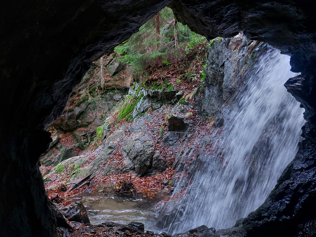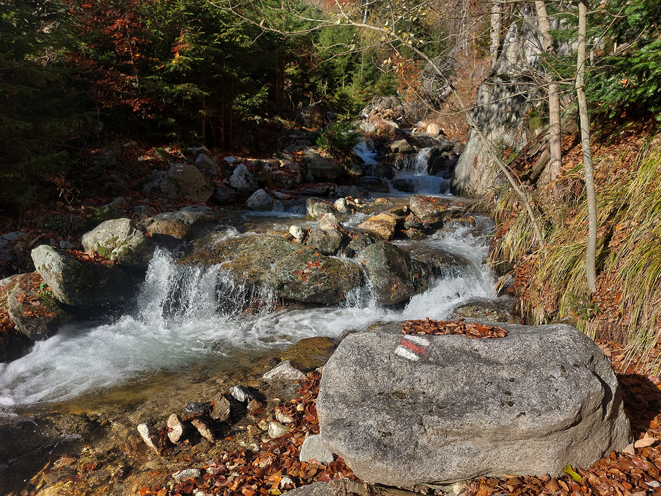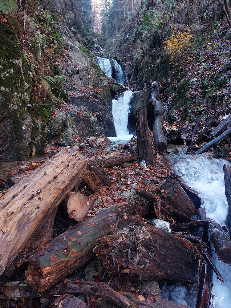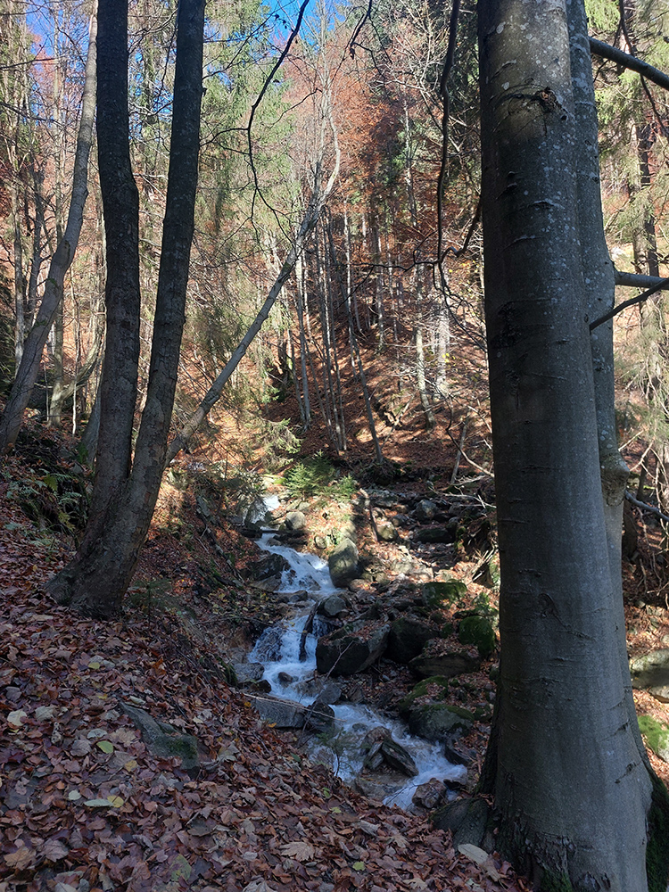 Po silných búrkach v polovici septembra sa Mlynskou dolinou a jej Pivovarským potokom prehnala blesková povodeň a trochu to tam „upratala“. Potok si na pár miestach preložil koryto, najmä v spodnej časti červeno značeného chodníka, hneď nad chatami. Aj parkovisko trochu „upravil“ a pobabral pár kusov vybavenia ferraty. Bežala zbierka na Donio.sk a jesennú sezónnu uzáveru využili dobrovoľníci na pár nevyhnutných opráv a aj úprav chodníka. Potom už jelene doručali, tak od 1.11. je ferrata otvorená znovu, je komfortne priechodná v celej dĺžke: niečo vyše štyroch kilometrov a 750 výškových metrov. Viac údajov škoda dávať, všetko je na STRÁNKE ferraty, a aj tak to tam už všetci poznajú :-) Jesenné usmoklené počasie sa ale pred dušičkovým víkendom konečne umúdrilo a nechalo prírode naplno sa vyfarbiť, no nechoď tam...