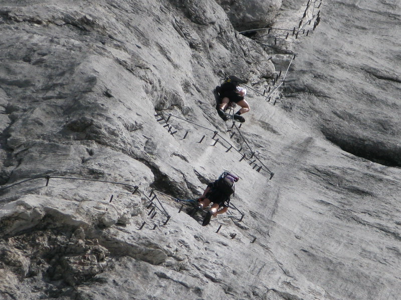 Pozorujeme z diaľky ľudí, ktorí už sú na ferrate. Nemáme ilúzie, že tu budeme sami, táto cesta je príliš známa a počasie zatiaľ vyzerá veľmi dobre.