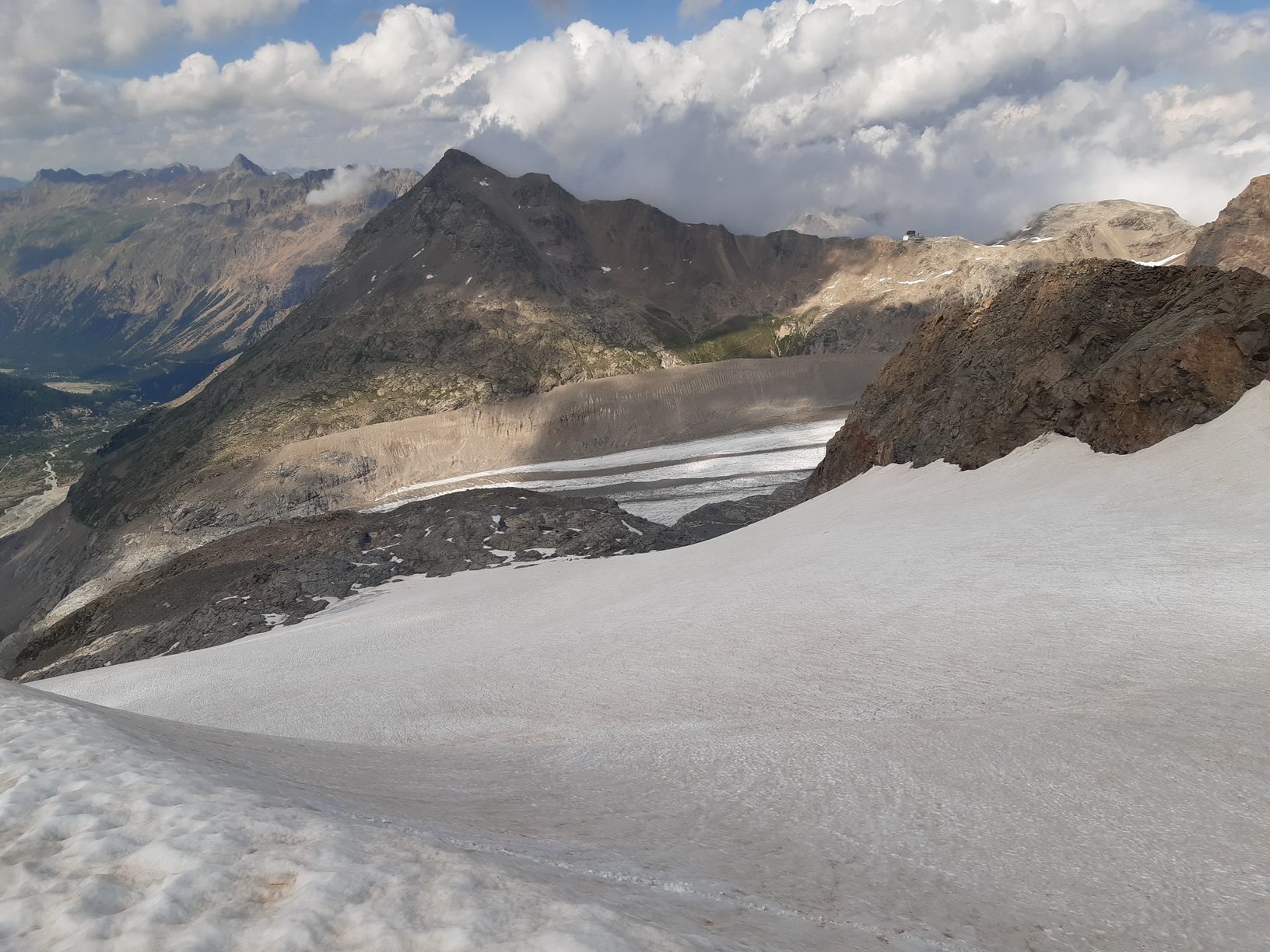 Samotný prieskum sa mi nedávno konečne podaril. Naľahko som vybehol z doliny Morteratsch kde som nechal zamknutý bajk. Počasie a podmienky mi dovolili prísť až ku hrebeňu a celý ho preliezť hore i dole. Nemal som so sebou žiadnu výstroj a tak som k nemu pristúpil s rešpektom a opatrnosťou. Pri postupe hore som si dobre obzeral kľúčové miesta a jedno som si aj hneď pár metrov zliezol aby som získal potrebnú istotu.