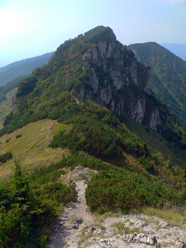 Až po Malý Kriváň ani noha, len zberači roztrúsení v čučoriedkach. Sme v národnom parku, no a čo? Zarobiť treba. Ale nezávidím im, slnko sa už statočne do svahov opiera aj tu hore. A nefúka až tak ako by bolo treba. Zas som mokrý ako myš a keď okolo Stratenca a Bielych skál chodník vlezie do kosovky a tam prestane už úplne fúkať, sauna je proti tomuto šuviks. Ale mám ju aj s vôňou ihličia :-) Na Suchom stojí nejaká nová výzdoba a ešte nepokreslená fixami, asi tu dlho nie je. Zato vo vrcholovej schránke len nejaké zdrapy, zbytočne som si prsty na vrchnáku popálil.