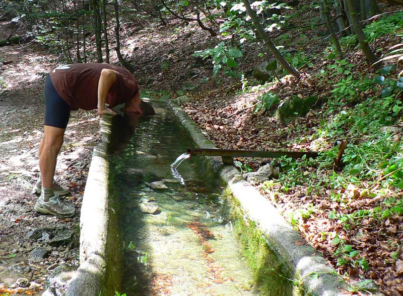 Začína ponáranie do kotla s vriacou vodou, teda zostup do kotliny. Po chatu pod Kľačianskou Magurou to ešte ide, lebo lesom a nie veľmi prudko. Žľab nad chatou, čuduj sa svet - plný vody, hriech nevyužiť :-) Ale od chaty dolu už to cítiť fest – stretám dokonca pár ľudí čo sa hore štverajú a nevyzerajú vôbec šťastne. Je zhruba hodina po poludní a „zabava graduje graduje.“ Nemá zmysel utierať si spotené čelo, lebo aj dlane mám mokré. Ako fatamorgána prebleskuje dolu v opare vodná hladina „Ontária“. Už nech som tam, ešte nejakú hodinku zrýchleného zostupu treba vydržať. Konečne okolo tretej voda zasyčí, keď do nej leziem, obarené ryby utekajú, koniec srandy! Koniec leta?