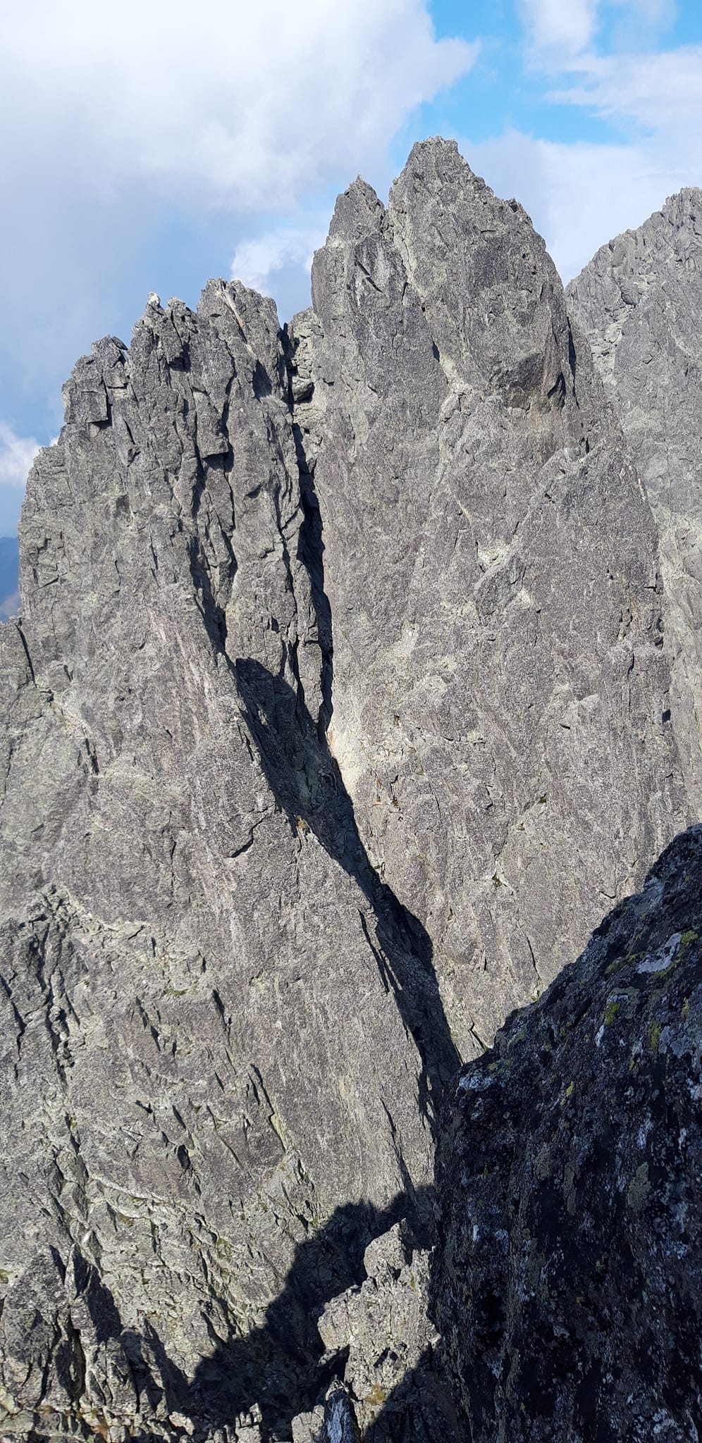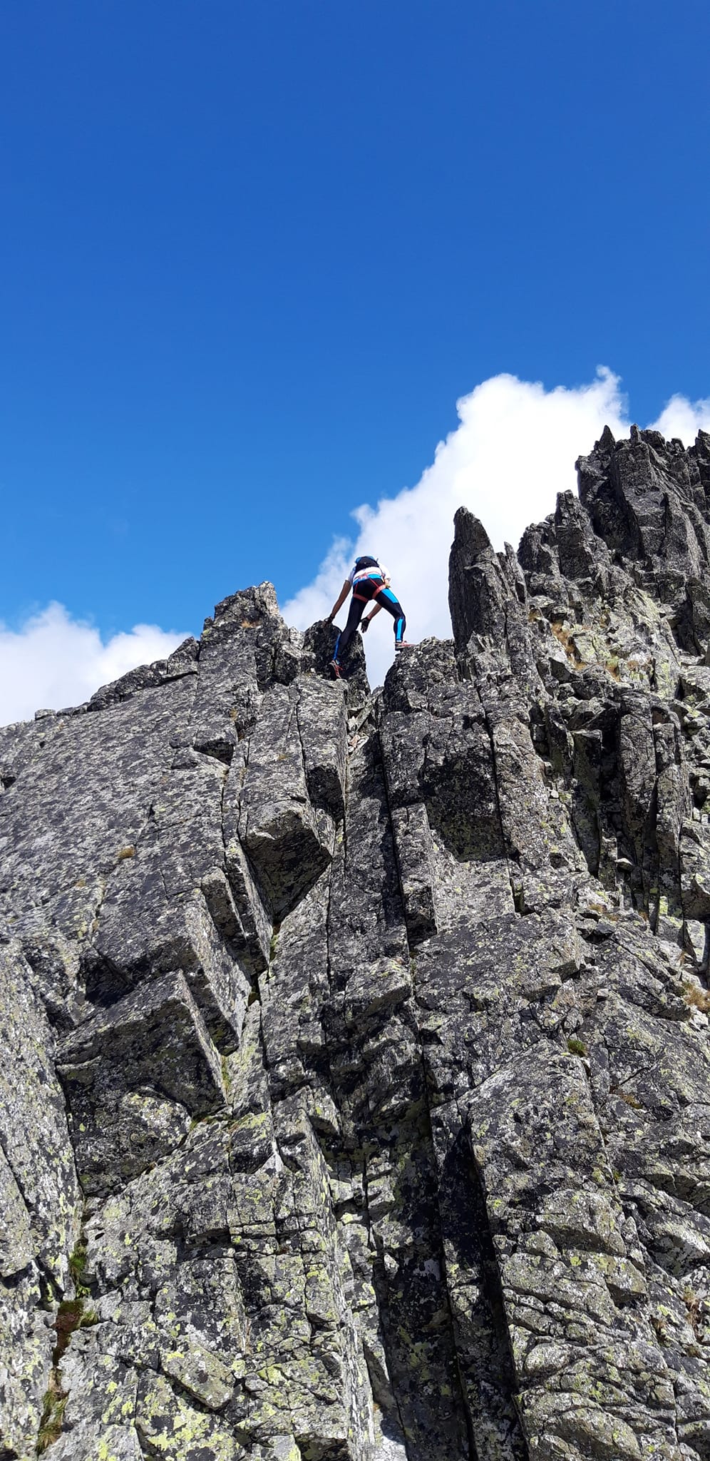 Zo Stolarczykovho sedla nás čaká trochu nudnejší úsek, pozvoľna stúpajúci na Baranie rohy. Z Baranieho sedla exponovanou stienku vyliezame na hrebeň smerujúci na Spišský štít. Tu to zas vyzerá na VHT.