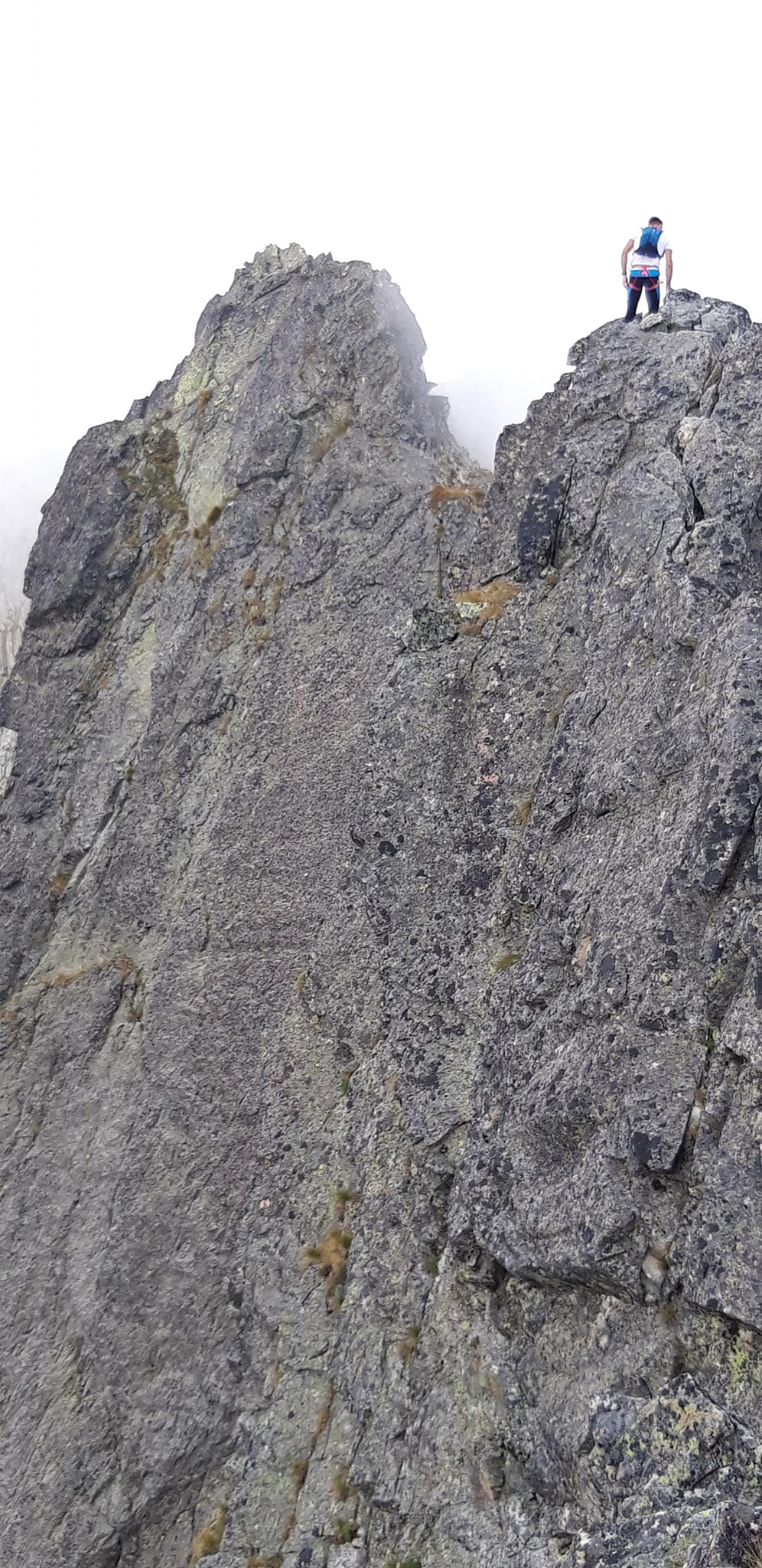 Ferimu naznačujem, že póza na Spišskej ihle, to by bolo foto! Neváha a za chvíľu mi už máva z vrchu. Mňa asi drbne, mobil odmieta fotiť - je totálne full. Kričím naňho, nech ešte chvíľu zotrvá v tej póze, a snažím sa rychlo čosi povymazávať. Feri je kľudas, ale mám obavy, aby zo mňa nedostal tiky.