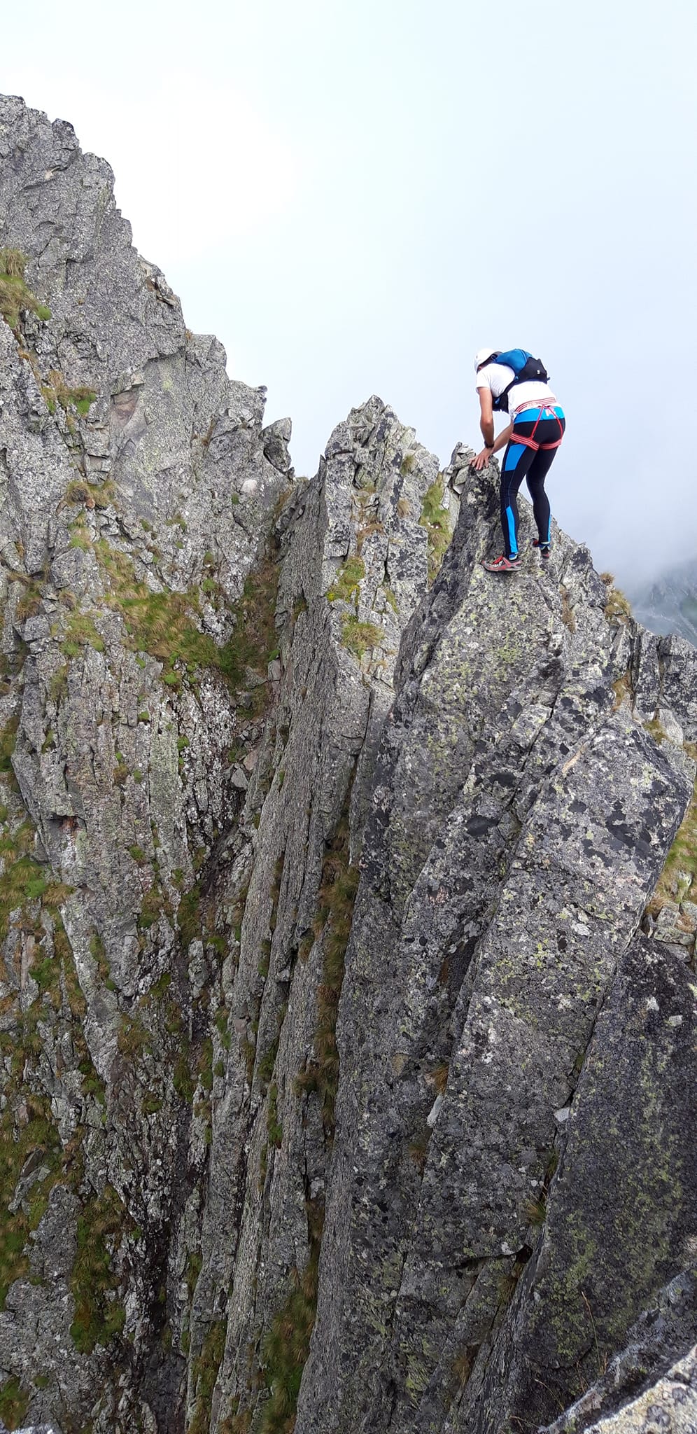 Po večernej, výdatnej búrke je všetko mokré a slizké. Z Jastrabej veže do sedla, kvôli dvom nepríjemným krokom, hádžeme radšej zlaňák.