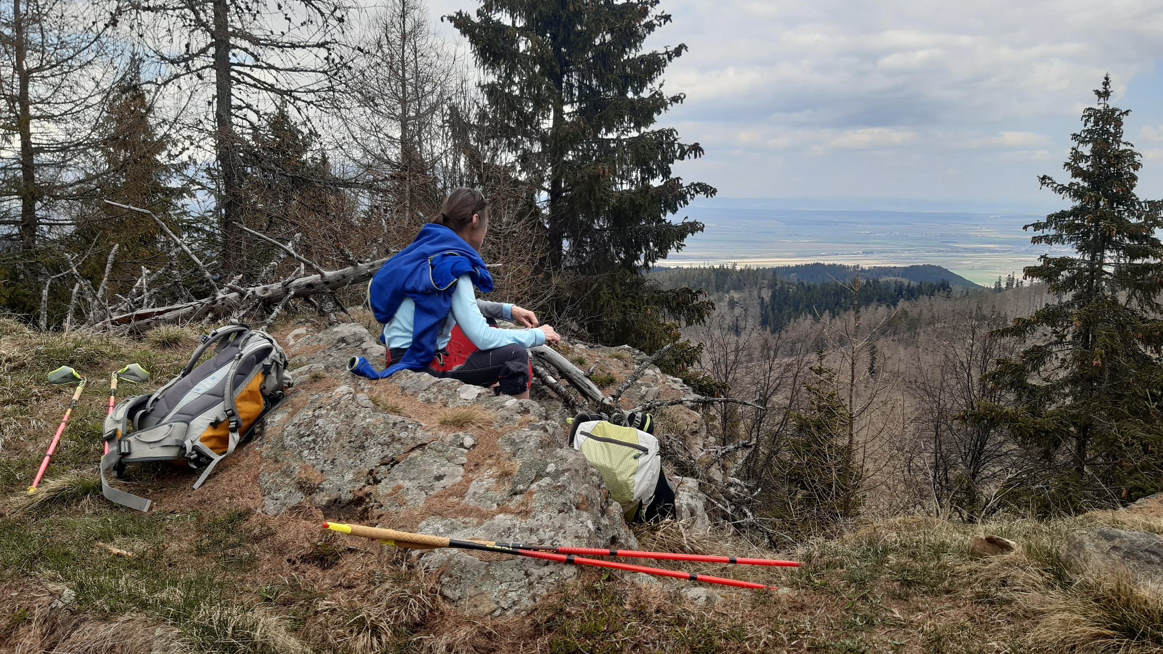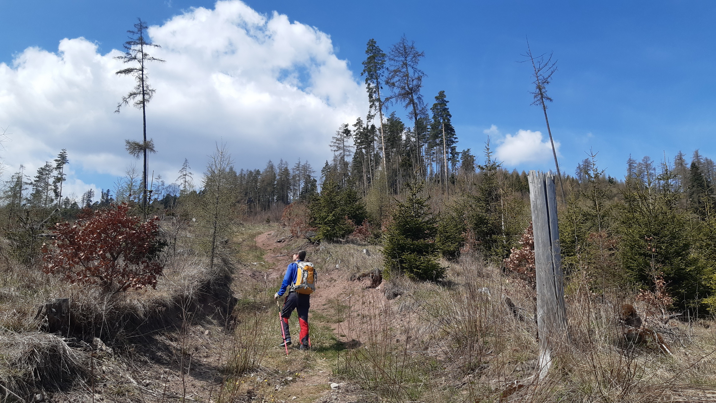 Na hrebeni sa napojíme na pekný chodníček, miestami je ale ešte poznačený nedávnou zimou s polámanými a vyvrátenými stromčekmi. Idúc chodníčkom miestami náročnejšie orientačnom (nie už pre nás čo sme tu ako doma) sa pripojíme na modrú značku vedúcu zo Spišskej Teplice na Kozí kameň.