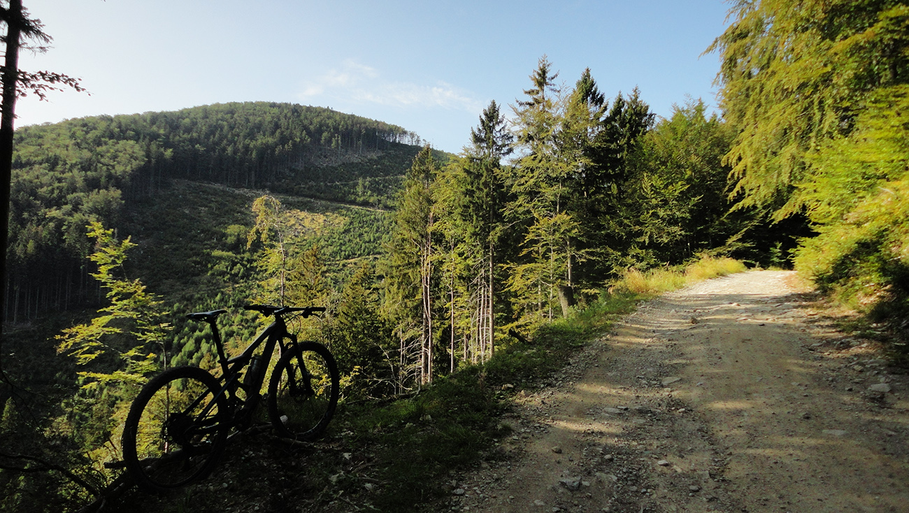 No a to je všetko. Celé je to na pohodu asi na šesť hodín, samotný traverz zo Šútova do Hoskory necelých päť. V pohode je to skoro celé na jazdu vo dvojici vedľa seba a pokec popri tom – cesty širokééé! Na mape to vyzerá ako pekná, logická cyklotrasa, presekávajúca horský masív. Keď si ale uvedomím, že sú to samé zvážnice a všade sa tam intenzívne ťaží, pritom na bajku (ani pešo) tam nemám čo hľadať, lebo sme v hĺbke národného parku, no... Z tohto pohľadu štatút chráneného územia vyznieva ozaj ako nepodarený prvoaprílový vtip. Načo je takýto potemkinovský národný park? Tak buď to má nejakú hodnotu, treba to chrániť (vtedy tam ani nepáchnem), alebo sú to hospodárske lesy a keď tam môžu traktory, prečo by som tam nemohol na bajku? Hej, možno zonácia by pomohla, ale to je asi ešte poriadne sci fi... A keď si to porovnám s nechráneným, ale o 500% krajším a prírodne zachovalejším, bajkpozitívnym Považským Inovcom , kde sme boli na jar, niet o čom. Niečo tu proste nehrá.