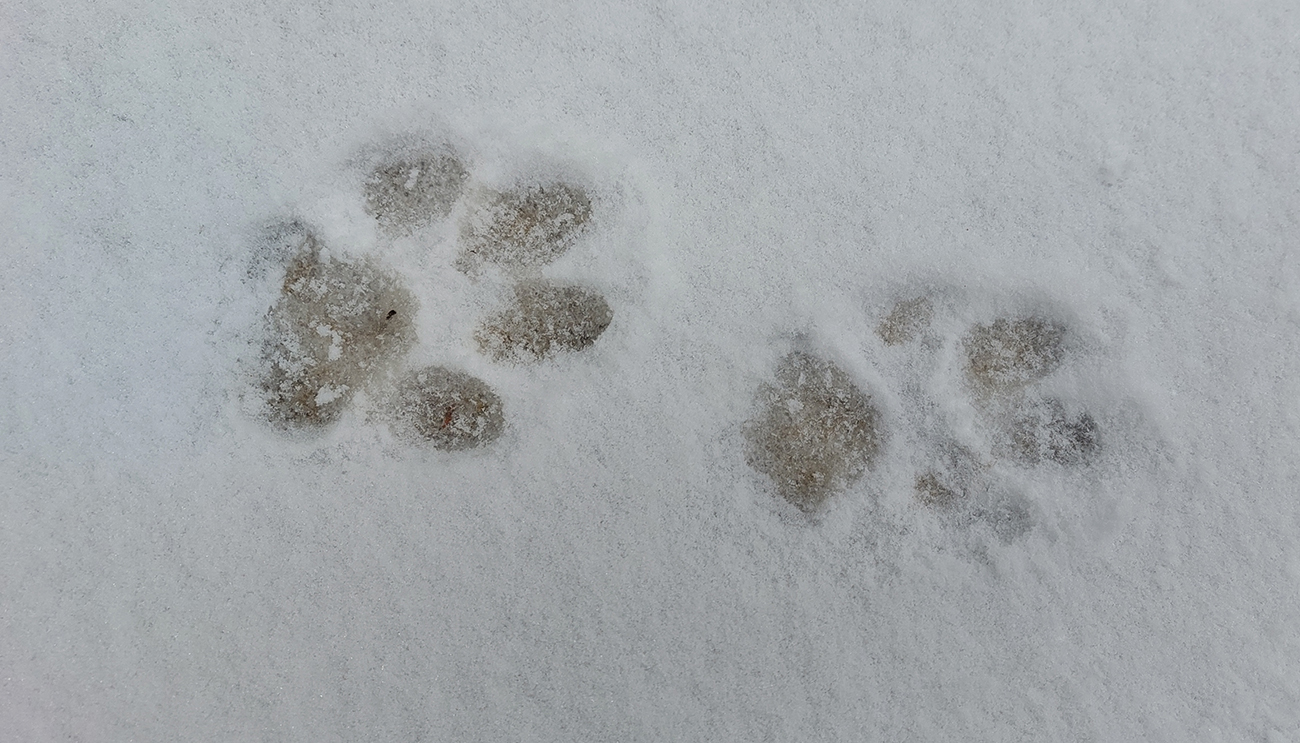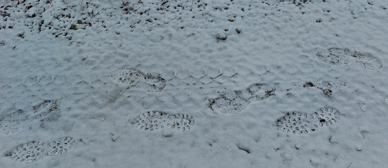 Dole lízneme lúky nad Trusalovou a posledné chatky - začíname druhé dlhšie stúpanie (asi päťkilometrové) pod Veľkú Kráľovú. Plynulá, široká zvážnica, dá sa ísť bok po boku a rozoberať témy od výmyslu sveta, Rýchlo to ubieha, ale jednou z tém začínajú byť aj tuhnúce nohy. Pripisujeme to zime – hore je mierne pod nulou, pod nohami to príjemne chrumká a vrždí. Blížime sa na druhý najvyšší bod dnešného výletu (980 m) a vďaka rúbaniskám máme aj výhľady do podhoria. Už dlhšie, veď národný park... Tipujem, že k našim stopám pribudli v čerstvom snehu aj vlčie, ale potom sa pridávajú aj stopy pneumatík a nejakých solídnych bagandží, tak to asi nebol vlk :-) V klesaní križujeme na Drgovej modrú značku (zo Sučian na Malý Kriváň) a onedlho nastupujeme do tretieho stúpania, od konca asfaltky v Sučianskej doline.