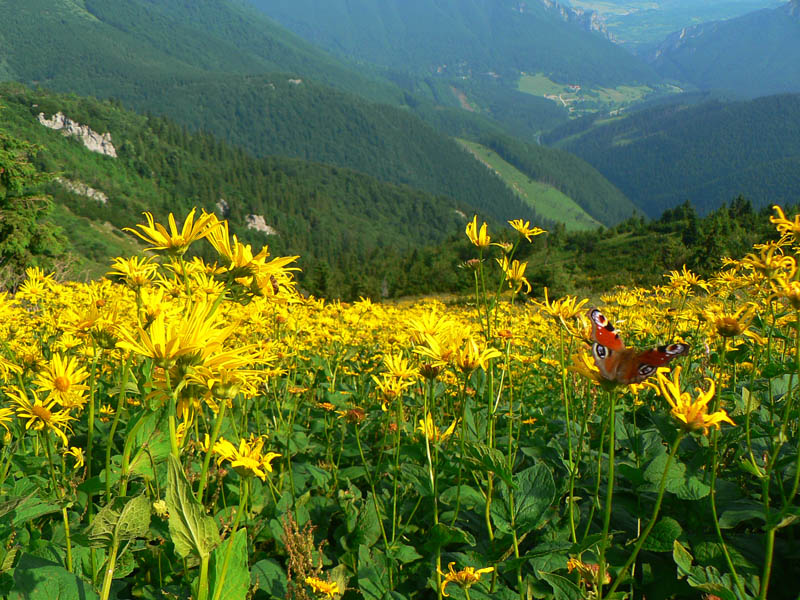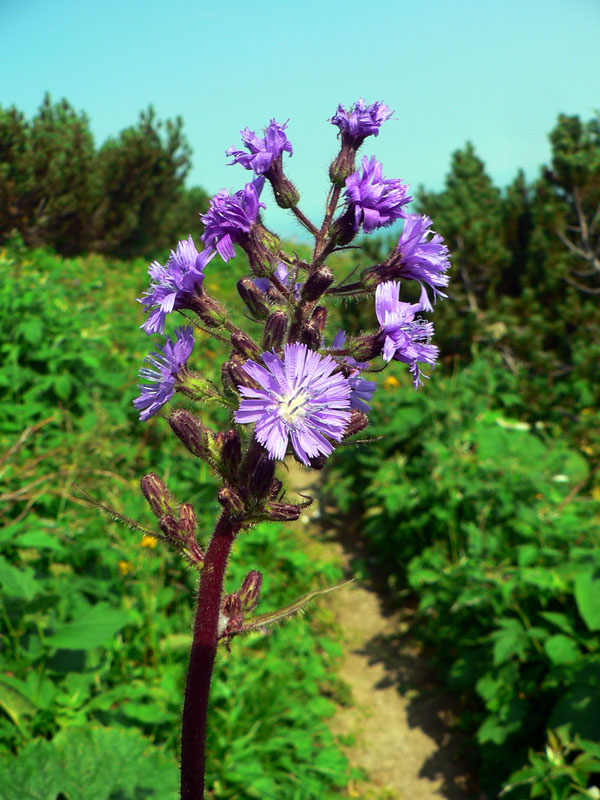 Brutálne teplo vďaka vetru nebolo cítiť, cez Hromové na Chleb je to na skok. Vychutnával som samotu a ticho, nikde nikto. Ale cestou do Snilovského sedla už bolo vidieť, ako sa na obe strany rozliezajú prví ľudia z lanovky - odbilo 9 hodín. Takže zo sedla žiadny Kriváň, vybral som sa traverzom po modrej popod hrebeň na Chrapáky. Nefúkalo tak príjemne ako na hrebeni, ale na chladenie to stačilo a aj tu všetko kvitlo ako divé, radosť kráčať.