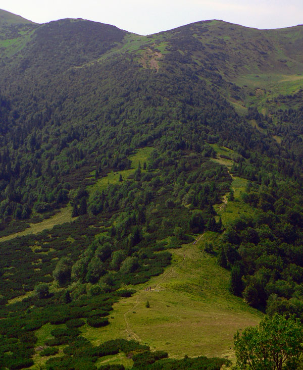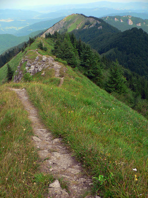 Ten prvý výšľap (na Kraviarske) bol asi najpríjemnejší, s výhľadmi a popri kosovke. Nasledoval kamenitý otvorený hrebienok, zošup do lesa a prudko hore lesom na zalesnené Žitné. Odtiaľ ešte prudší hlineno-kamenný zostup a následné strmé kľučkovanie pomedzi ostré skaly na Baraniarky. Miestami bolo treba zapnúť náhon na všetky štyri. Tu sa ale aj pekné miesta našli, dokonca nejaké reťaze a zábradlíčka. Do sedla Príslop to bolo asi najdlhšie a najhoršie z kopca. Súcitil som s ľuďmi, ktorí sa asi bez väčšej prípravy vybrali opačným smerom, keď sa ma pýtali ako je to ešte ďaleko. A kam? "K lanovce!" Znela odpoveď. Tak som pre istotu len zaželal šťastnú cestu :-) Lebo väčšina sa netvárila šťastne pri tom výstupe :-)