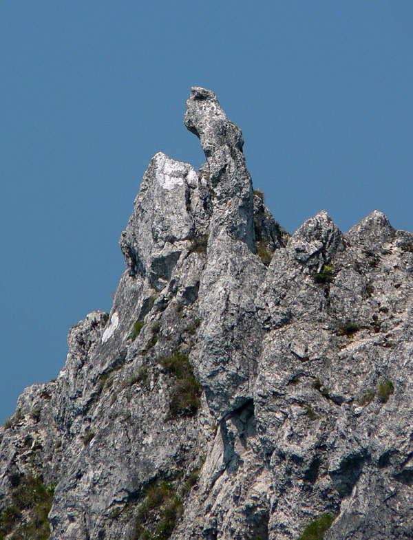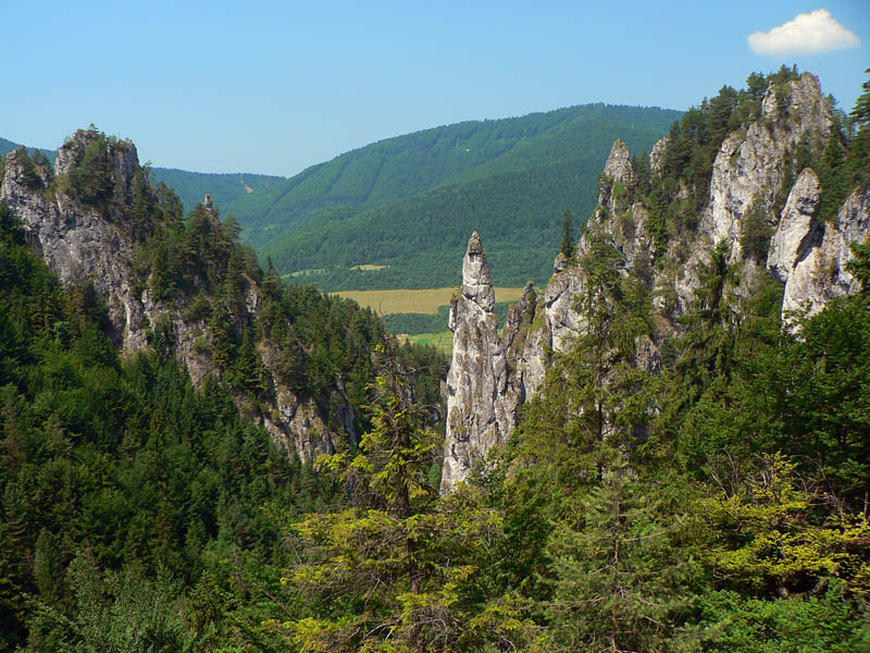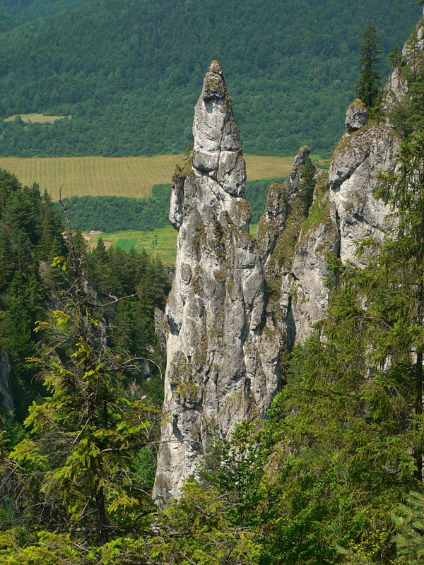 Na Sokolie zo sedla Príslop už bolo stúpanie pohodlnejšie, chodník nestúpa priamo po spádnici, ale okľukou. A na hrebeni sú viaceré vyhliadky a čoraz viac skalných vežičiek, takže je to pestré. Podobá sa to trochu na hrebeň Súľovských skál. Na západnom okraji Sokolieho je skál ešte viac a zostup zo sedielka Malé nocľahy do Terchovej cez dolinu Obšívanka je síce neskutočne strmý, ale aj neskutočne atraktívny vďaka skalným oknám, ihlám, stenám, previsom a všetkým tým nádherám, ktoré v tomto skalnom meste príroda vytesala. Na spodnom konci doliny už len ostávalo rozhodnúť, či doprava do Terchovej, či doľava do Vyšných Kamencov. Doľava bolo k autobusu bližšie :-)