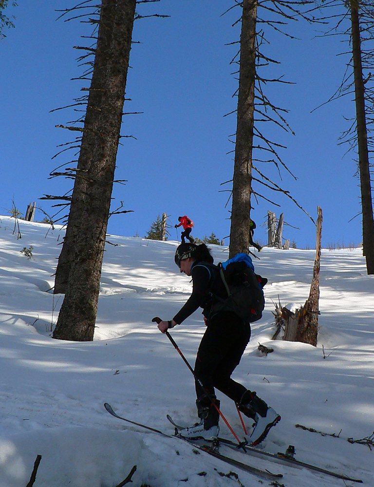 Samozrejme aby bola symetria zachovaná, druhý raz sme sa zrútili zase na sever spod Veľkej hole, ale tentokrát už riedkym lesom, znaleckými chodníčkami – len som čumel, aké zázráčná sa ukrývajú za zdanlivo nepriepustnou smrekovou hradbou pod výstupovým chodníkom. Miestny znalec Z proste hviezdil!