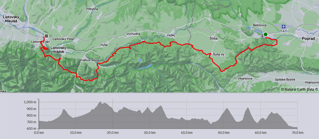 Presnejšie zo Svitu do Podturne, po lúčnych a lesných cestách v podhorí Kozích chrbtov a Nízkych Tatier. Obchvatom Smolníka (995 m) do Lopušnej doliny, ponad Šuňavu a Važec ku železničnej stanici vo Východnej, ponad Biely Váh po cyklotrase k Čiernemu Váhu pri Kráľovej Lehote a poza Mních (1150 m), Selnice (1244 m), Zápač (884 m) a Kameničnú (928 m) do Liptovského Jána. Nenáročné jazdenie, lebo ozaj buď po lúkach, alebo po dobrých lesných cestách. Len zopár krátkych, rozbitejších, strmších úsekov, kde treba dobré nohy a techniku. V prvej časti panorámy Vysokých a neskôr Západných Tatier, v druhej (od Važca) sa ide viac lesom, v príjemnom tieni, občas cez horské lúky. Klasická šotolinovo-hlinená cykloturistika, v podstate by to bolo aj pre gravelistov. Ale už xc zdvihy a tlsté gumy zaručujú oveľa vyššiu mieru komfortu. Dokopy teda asi 70 km a 1600 výškových (gpx je hore), takto: