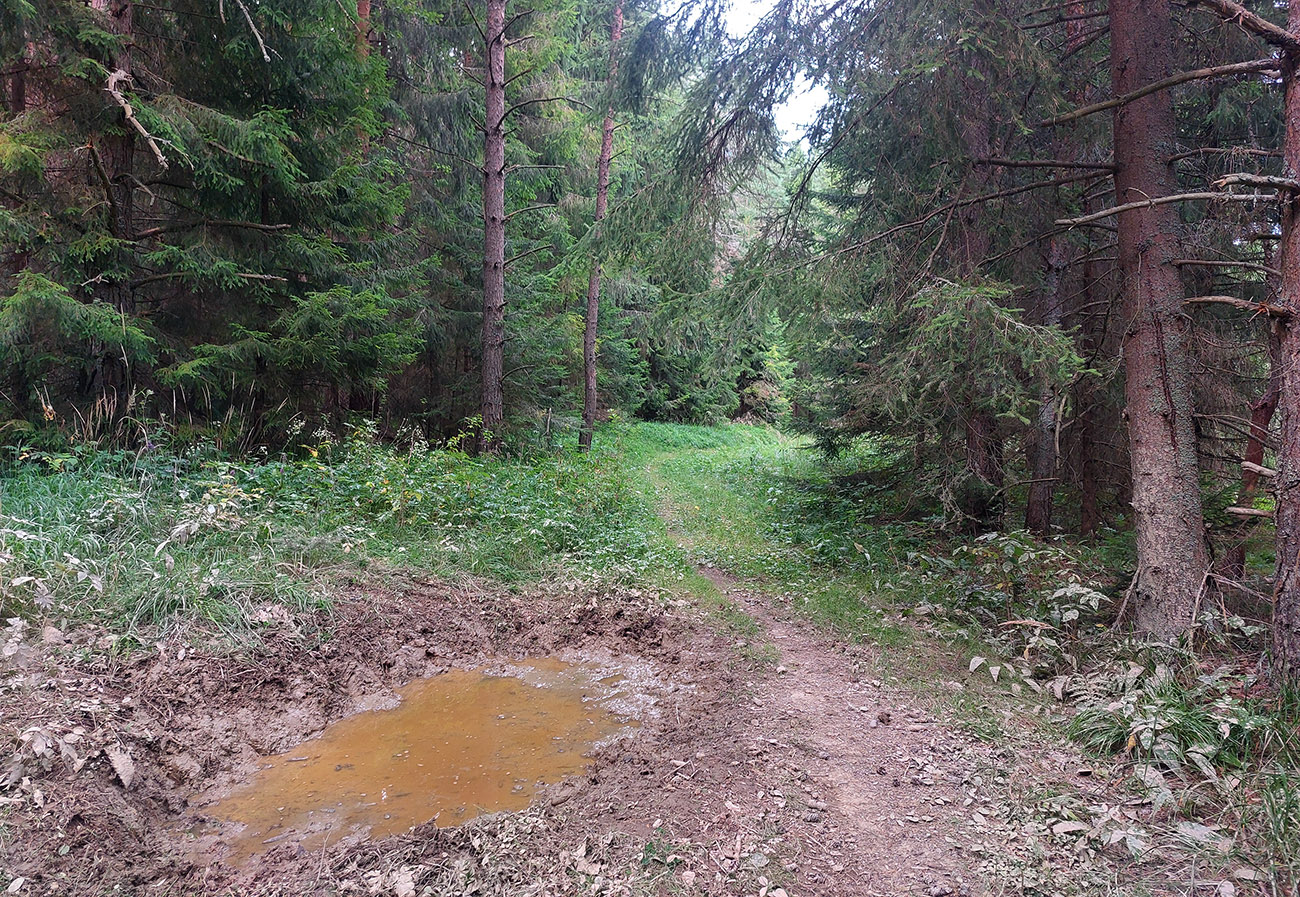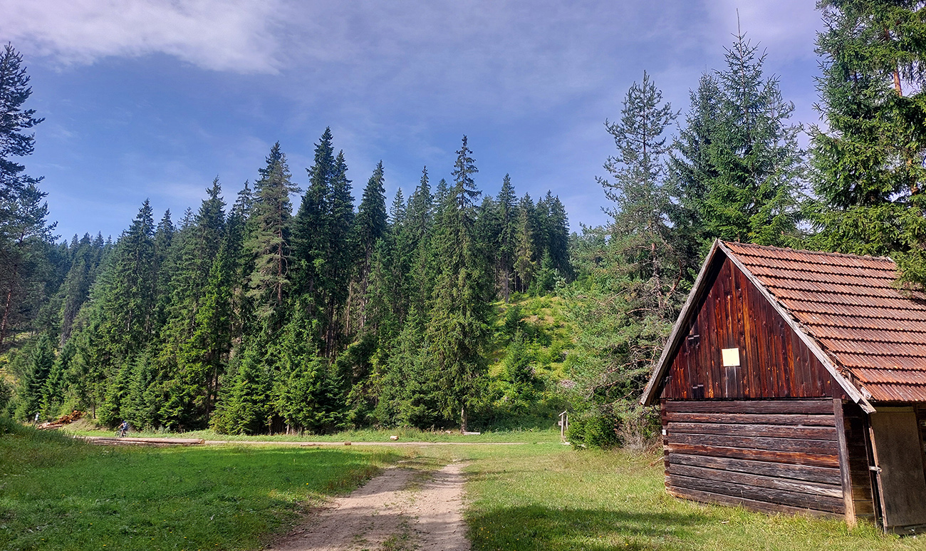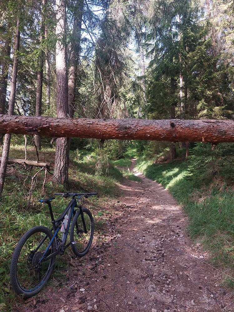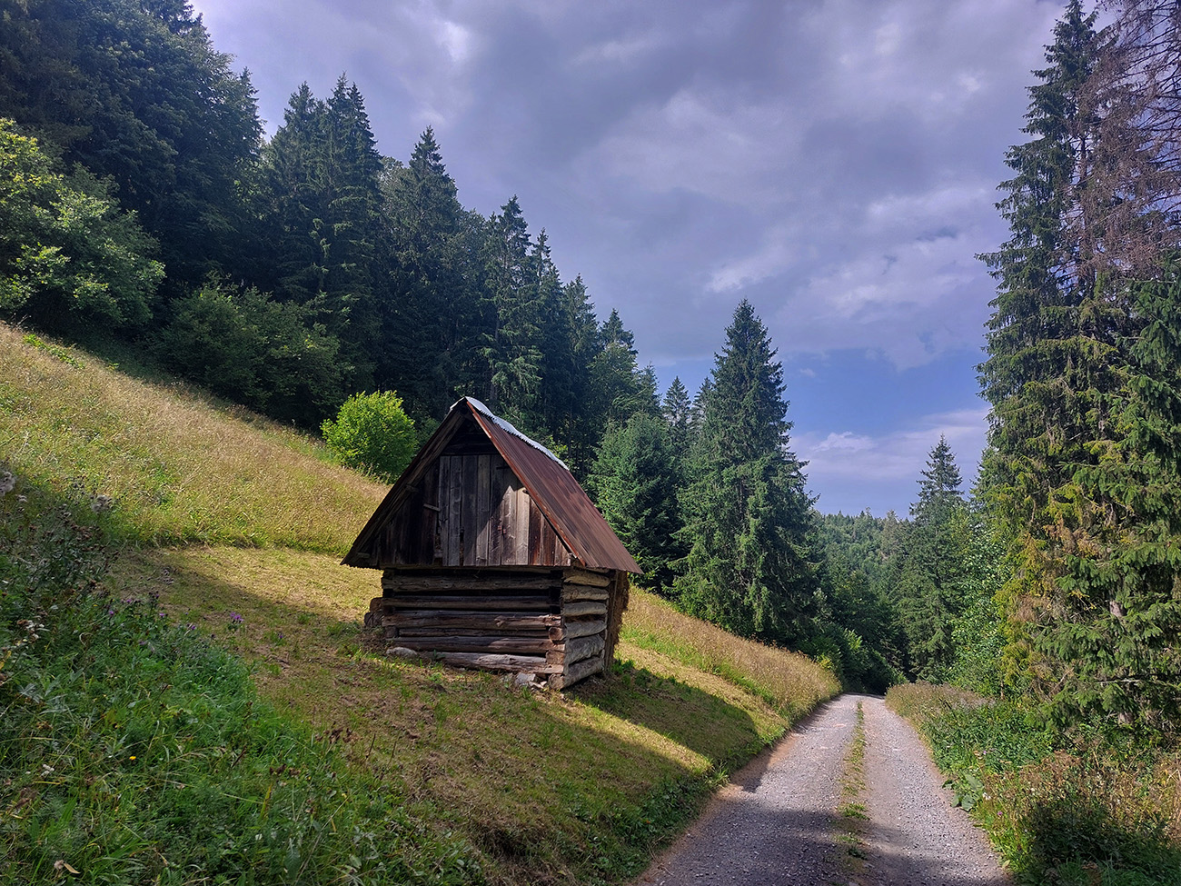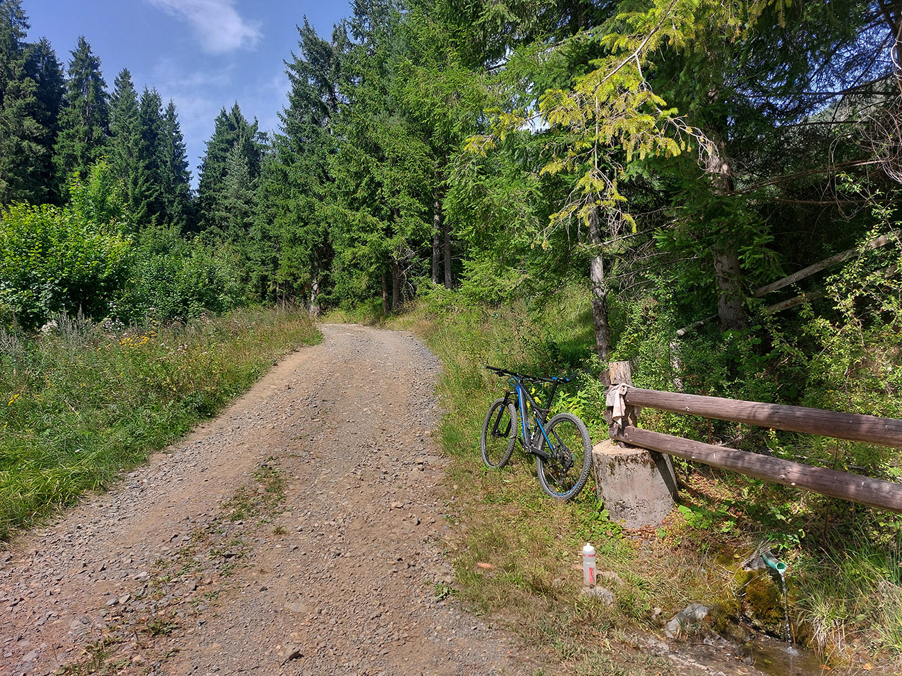 Najväčší „záhul“ ma čakal pod Selnicami, v stúpaní po zelenej značke do svahov nad Michalovskú dolinu. Na pár stovkách metrov je to superstrmé. Ono by sa to dalo vyjsť, len prach, voľné kamene a erózne ryhy... Ale v úvode strminy studnička dobre padla, nad hlavou krásne bralá a okolo lúky, lesy, chaty. Naopak zjazd na horný koniec Liptovskej Porúbky je potom rýchly, rovný a pohodlný.