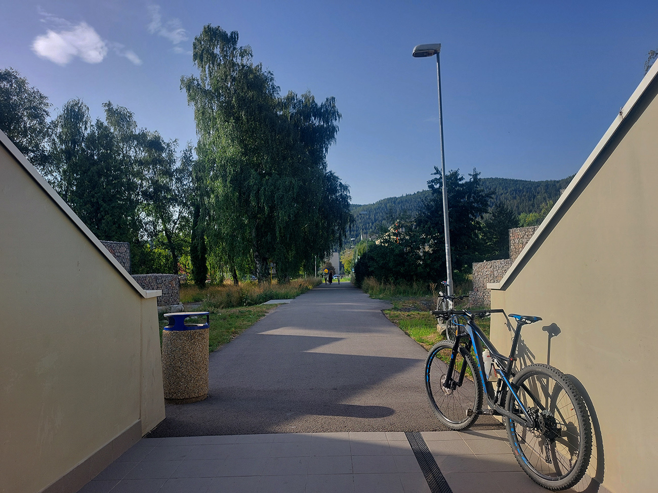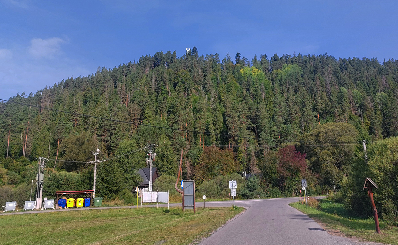 Tak a ešte posledné stúpanie a posledný obchvat kopca – poza masívy Zápače a Kameničnej, stále po „Náučnom chodníku k minerálnemu prameňu“. Po sedlo Vislavice je to aj cyklotrasa. Za odmenu na záver podkladom aj sklonom príjemné, tienisté lesné cesty. Z poslednej serpentíny v zjazde už aj čiastočný výhľad na Liptovský Hrádok: