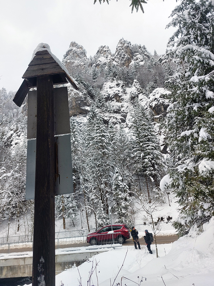 Úvod nič moc, z centra Terchovej do Bieleho Potoka popri ceste , lebo aj Terchová sa viac stará o to, aby autám a nie pešiakom sa dobre žilo, keď nasneží. Potom ale už Dolné diery a síce chodník prechodený, ale iba pár ľudí, navyše v našom smere. Vychutnávačka čerstvo obielených brál, poriadne dlhých cencúľov, hravého potoka a jeho ľadových doplnkov, no jedna paráda!