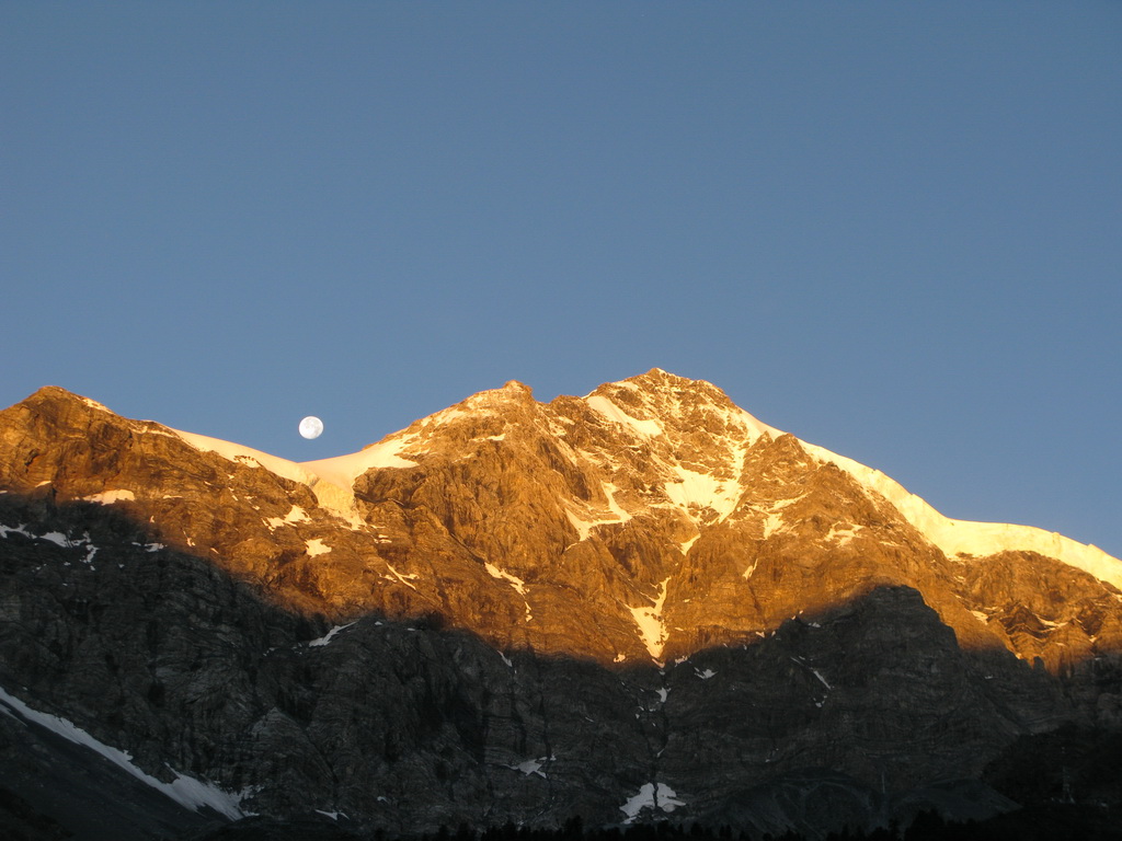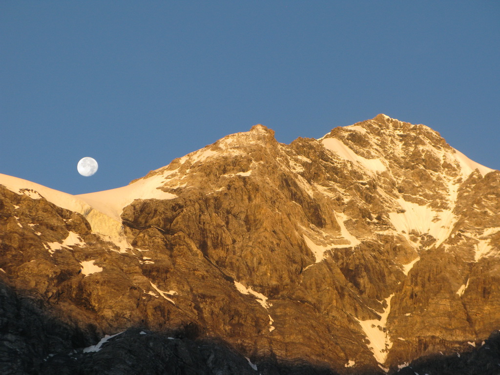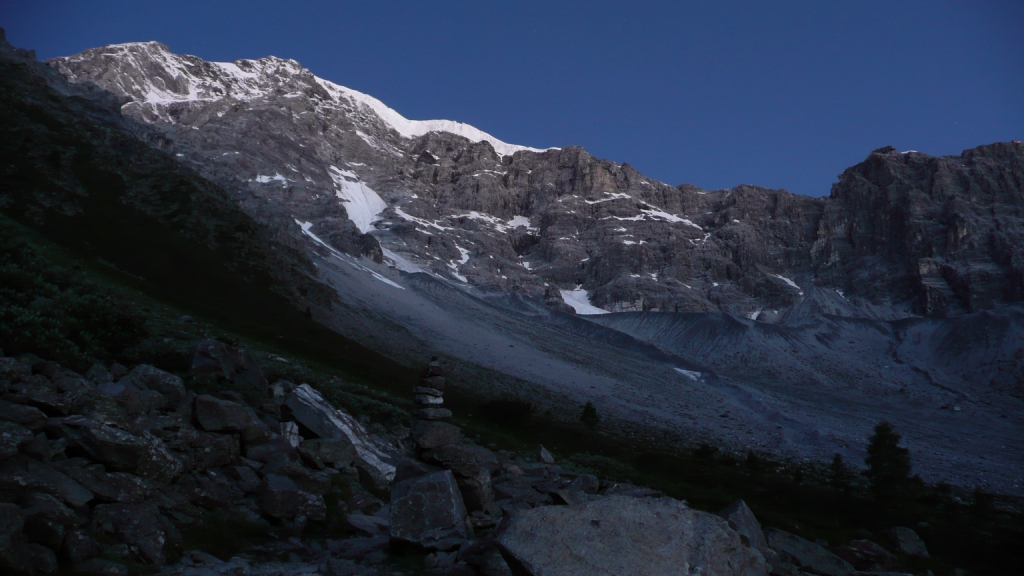 V Suldene to už poznáme, takže ideme rovno na parkovisko pri lanovke na Langenstein. Práve tu zišli z Ortleru štyria Žilinčania. Strašia nás, že to za jeden deň nedáme a podobné somariny. Spíme rovno na parkovisku pri aute s mnohohviezdičkovým výhľadom na hviezdy. O tretej ráno ešte za tmy budík, vyfón, kávička a o 3.45 vyrážame traja. V lese chvíľu trvá, kým sa správne nasmerujeme. Nad lesom si vychutnávame nádherný východ slnka.