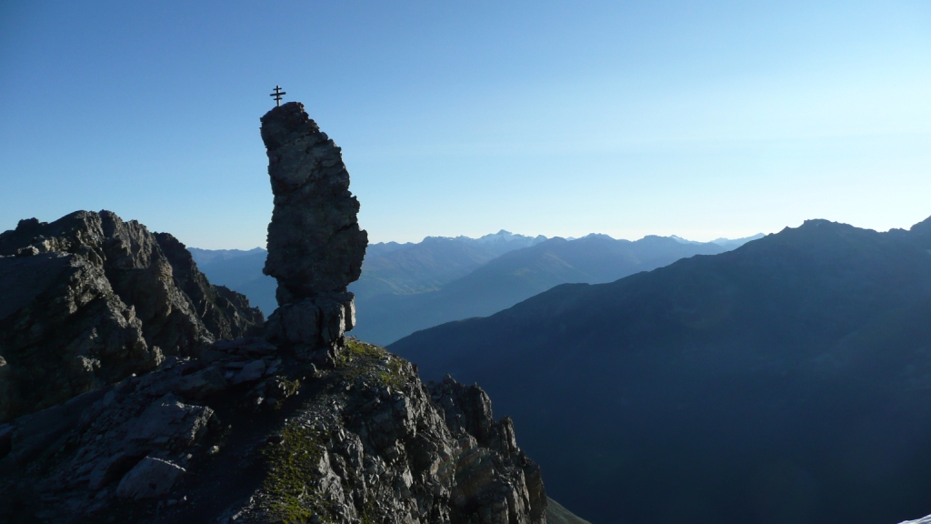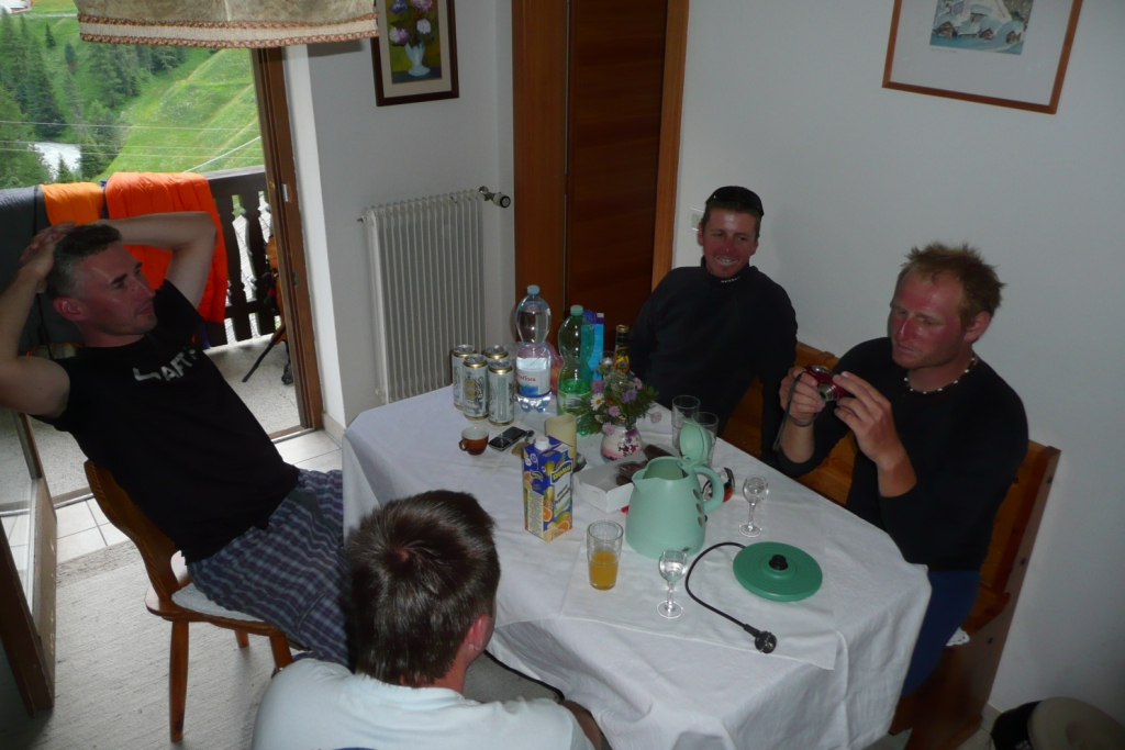 Zostup ozaj pohoda až po to strmé miesto na ľadovci, ktoré schádzame naviazaní naozaj veľmi, veľmi opatrne. Na skalnom hrebeni sme dve krátke miesta zlanili. Boli tam pripravené kruhy. Pivko na slnečnej terase Payerhutte je úžasným pôžitkom. Ešte treba dodať, že skalný hrebeň je miestami exponovaný, takže treba mať istý krok. Je to podľa mňa taká náročnejšia VHT. Určite ťažšie ako napríklad na porovnanie Glockner z Franz Jozef Hütte alebo Blanc cez Gouter.