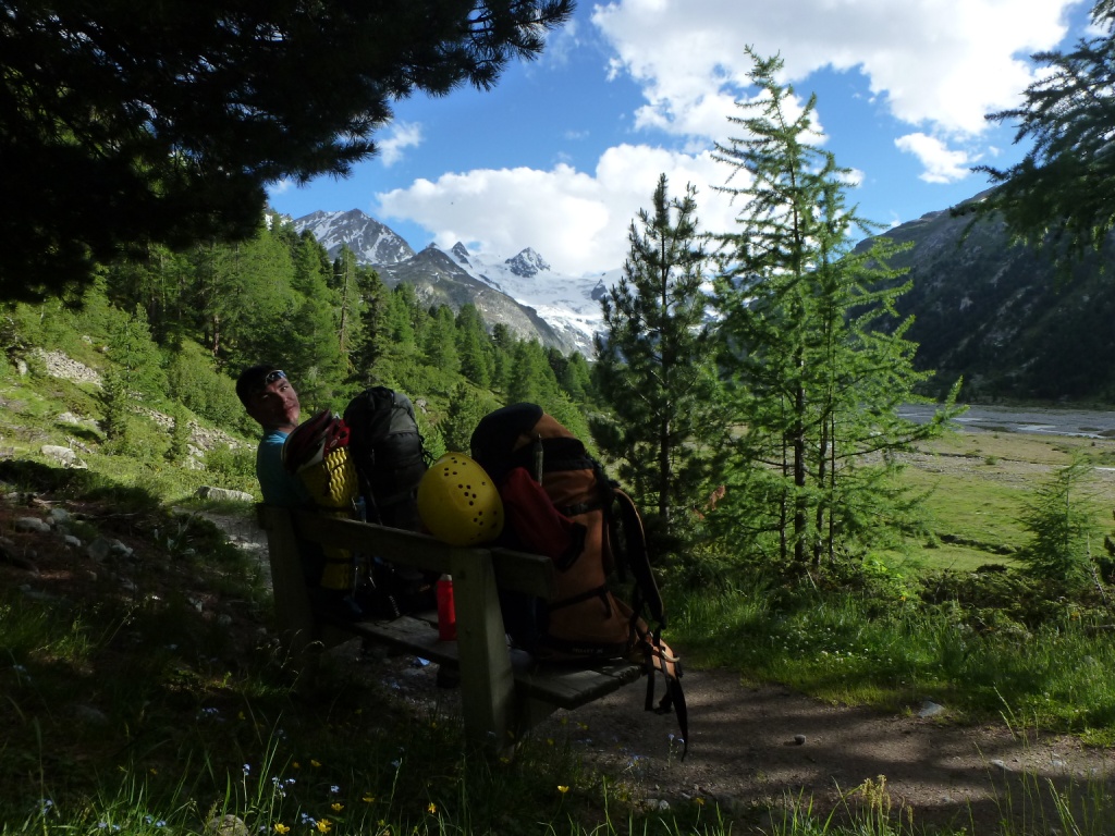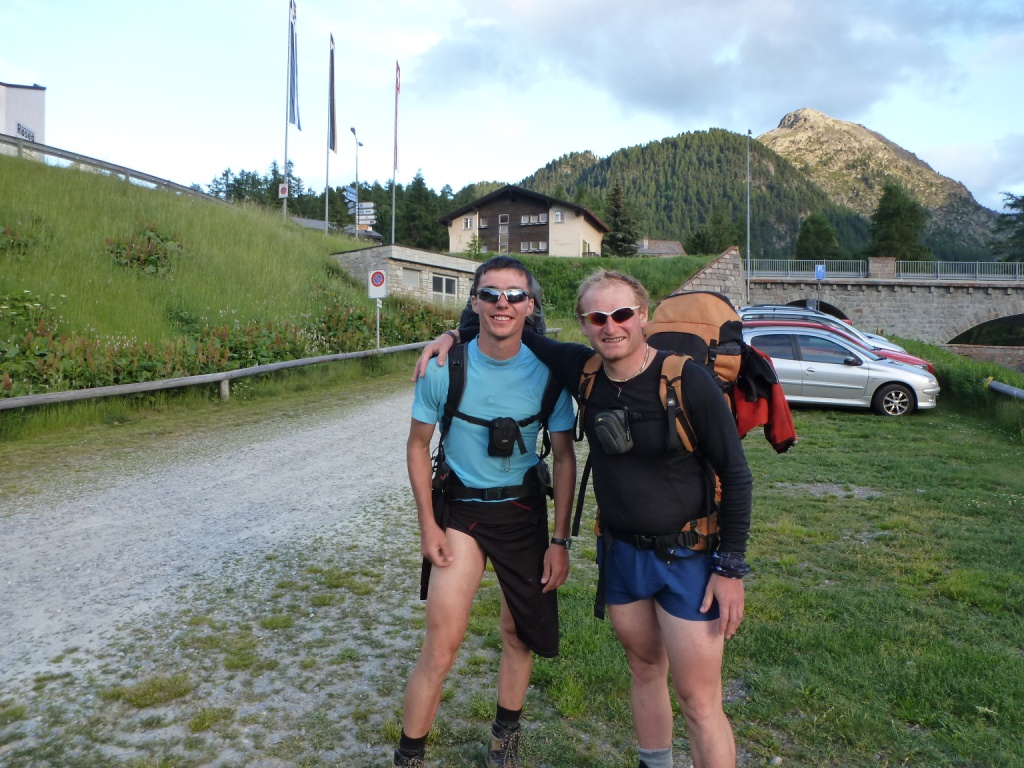 Druhý deň sme v St. Moritzi a stále nám prší. Náš podporný tím, Peťa a Dušan, z domova hlási, že zajtra máme vrcholový deň, tak sme nabalili batohy a vyrážame na Tschierva Hutte. Ešte predtým nám však neostáva iné, len so zaťatými zubami zaplatiť v Pontresine na stanici parkovné takmer 20 eur za dva dni. Na toto v našom obľúbenom Taliansku teda nie sme zvyknutí.
