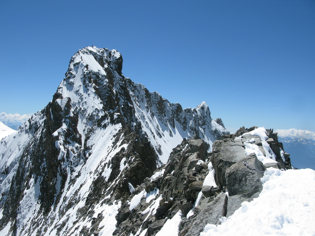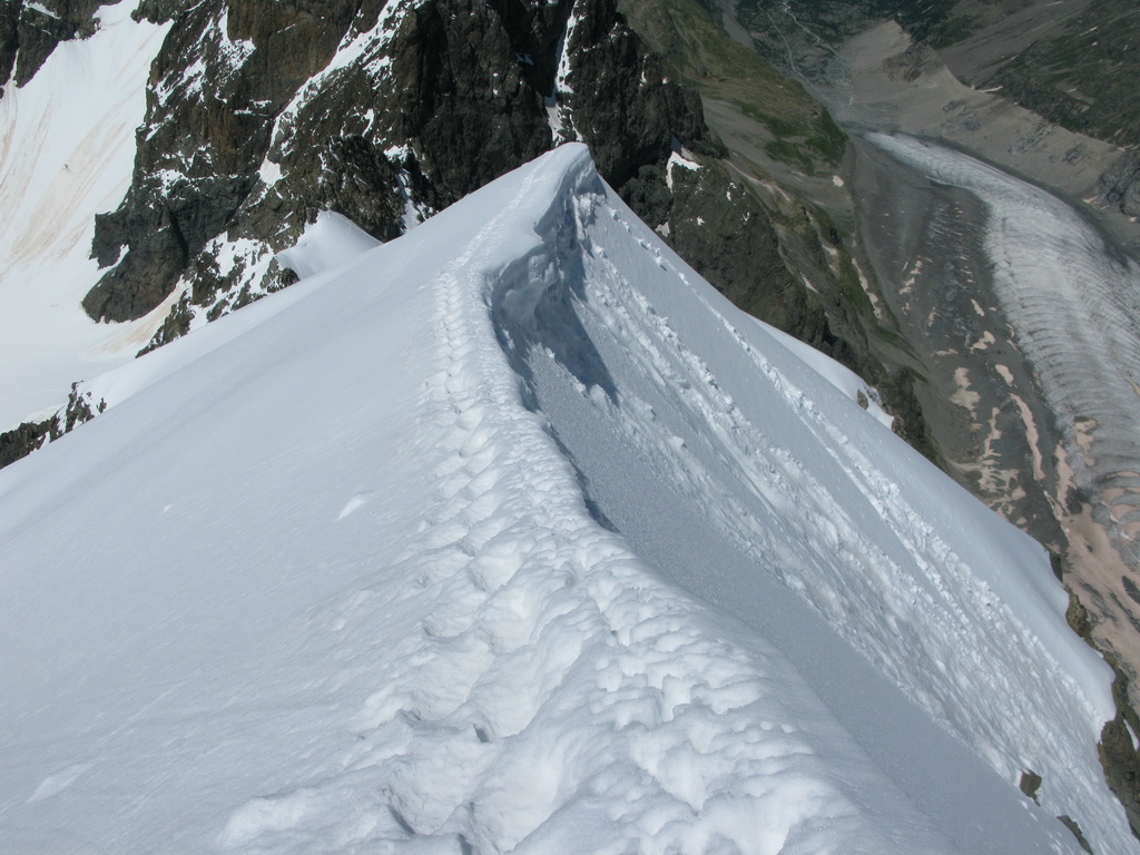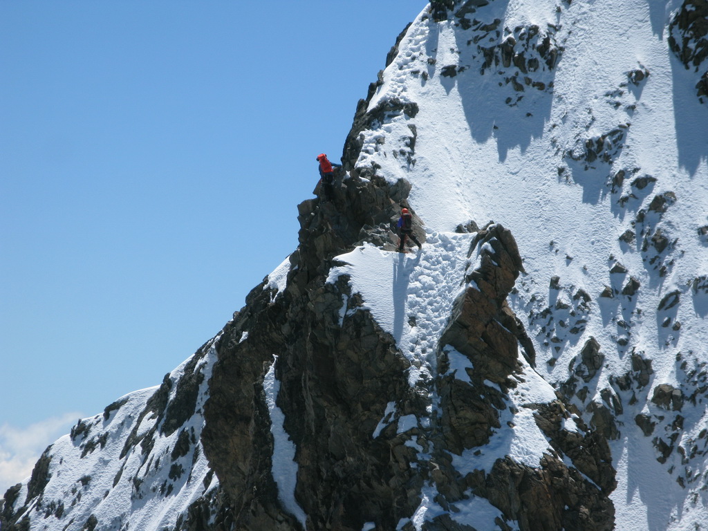 Biancograt - táto obľúbená túra bude túto sezónu ešte viac vyhľadávanejšia. Výstup na Matterhorn totiž značne skomplikuje kôli prestavbe zatvorená Hornli hutte. Toľko mi prezradil jeden známy horský vodca. Po dllhom období dažďa sa v posledných dňoch konečne vyčasilo a tak som dnes využil výborné počasie a bol som sa pozrieť aké sú podmienky na Biancograte. Túto túru totiž značne ovplyvňujú snehové podmienky a tak dokáže byť zakaždým úplne iná. Nebolo tomu ináč ani dnes. Snehové podmienky sú výborné. V stúpaní do sedla Prievlusa je veľa snehu, okrajová trhlina zasypaná, na Biancograte žiadny vodný ľad a aj cez záverečný kľúčový hrebeň som sa dostal v pohode. Viacej už z fotiek.
