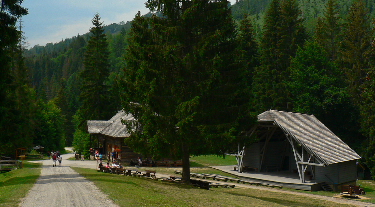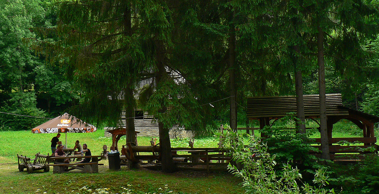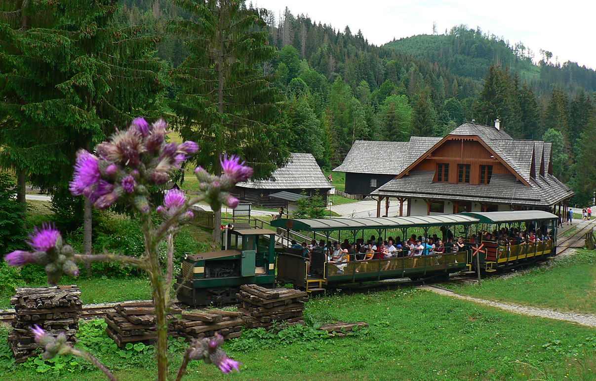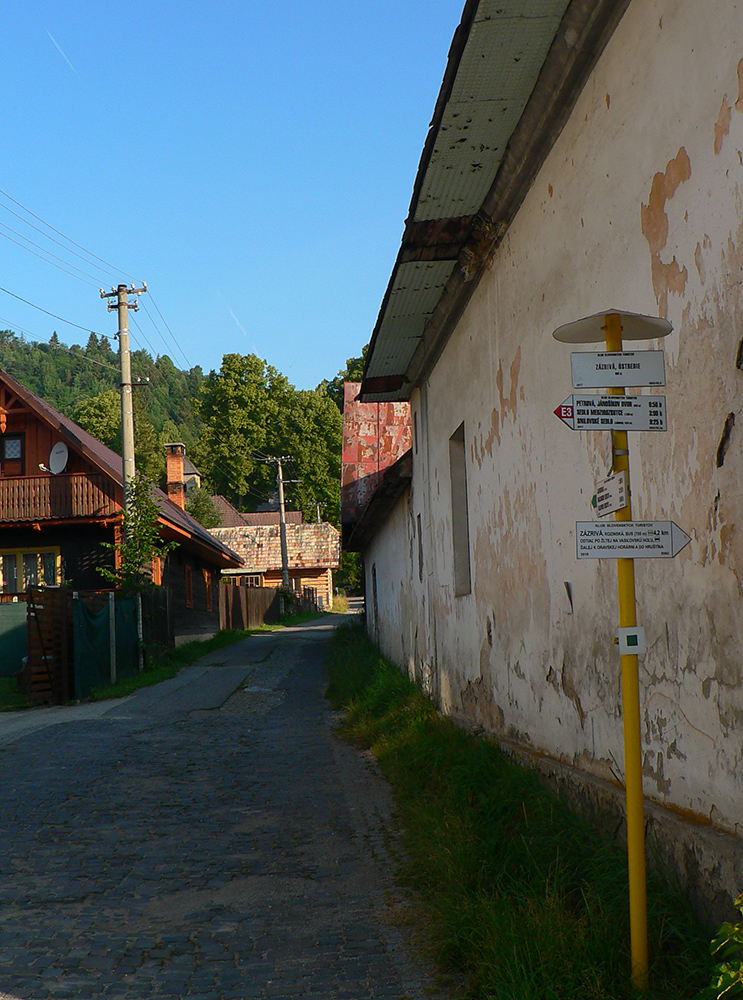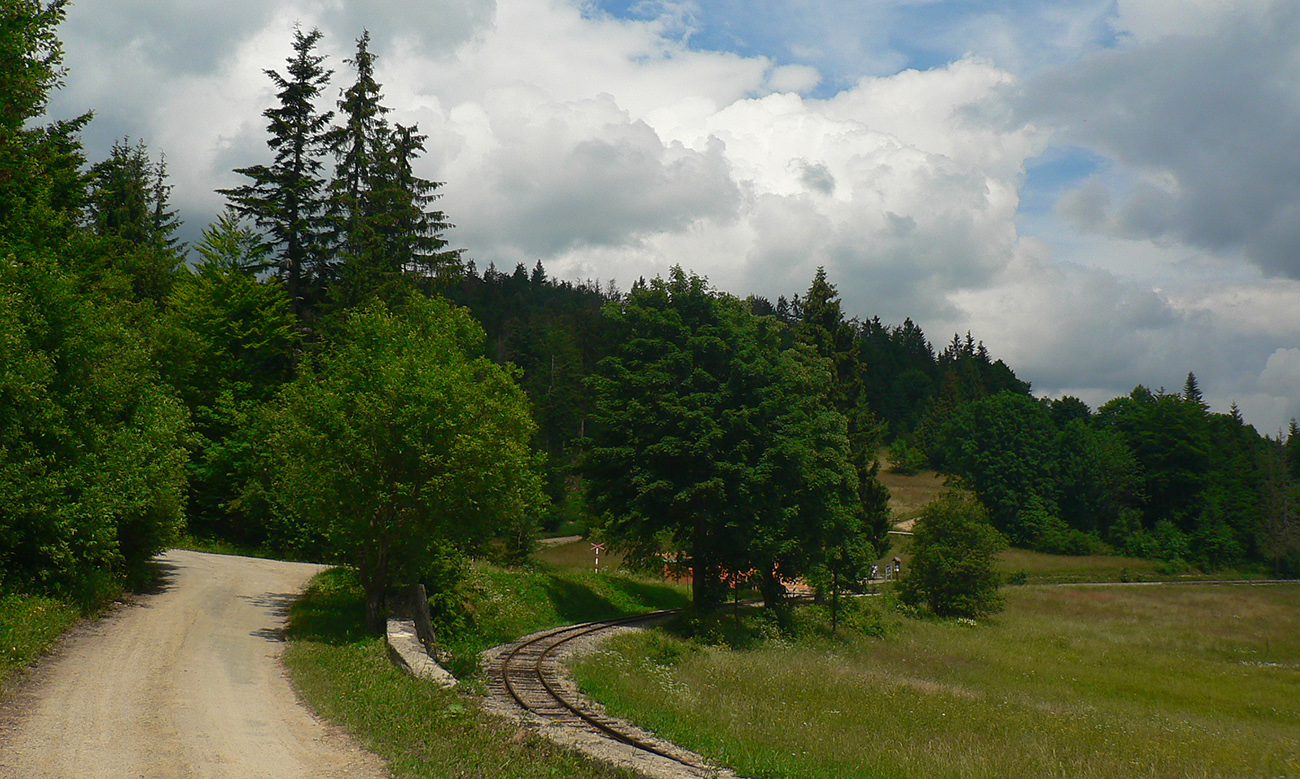 Vstupujem „do civilizácie“, lebo okrem miestnych z osady sa okolo vrcholovej stanice oboch lesných železničiek moce vždy veľa turistov. Neobišiel som samozrejme rozhľadňu, ale cestou dole do Vychylovky som naopak veľmi rýchlo odbočil z červenej – načo sa po nej trepať až dole po asfaltke, keď sa dá po zvážnici uhnúť doprava a zísť k prvej úvrati (Chmúra) a odtiaľ zhora do skanzenu... Vstupenku som si kúpil, ale až na konci prehliadky :-) Potom už len zo dva kiláky pešovania na Rycierky, na autobus. Inak netreba ísť ani po ceste, dá sa aj po železničke, ak je akurát pokosená :-)
