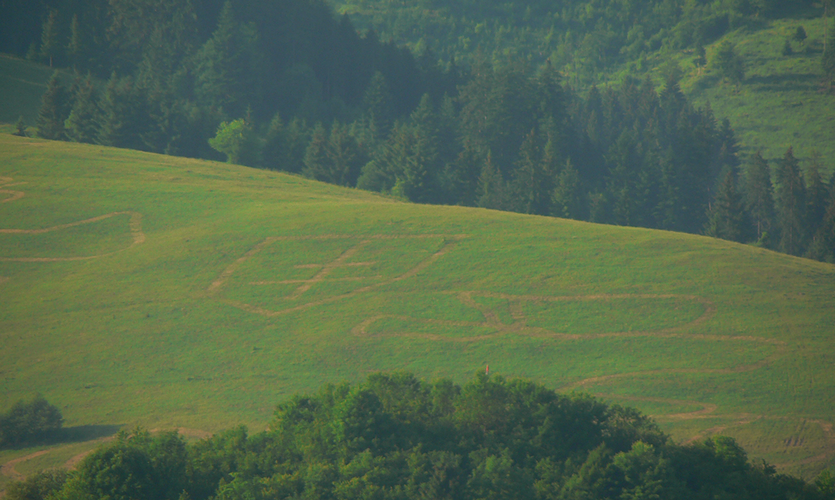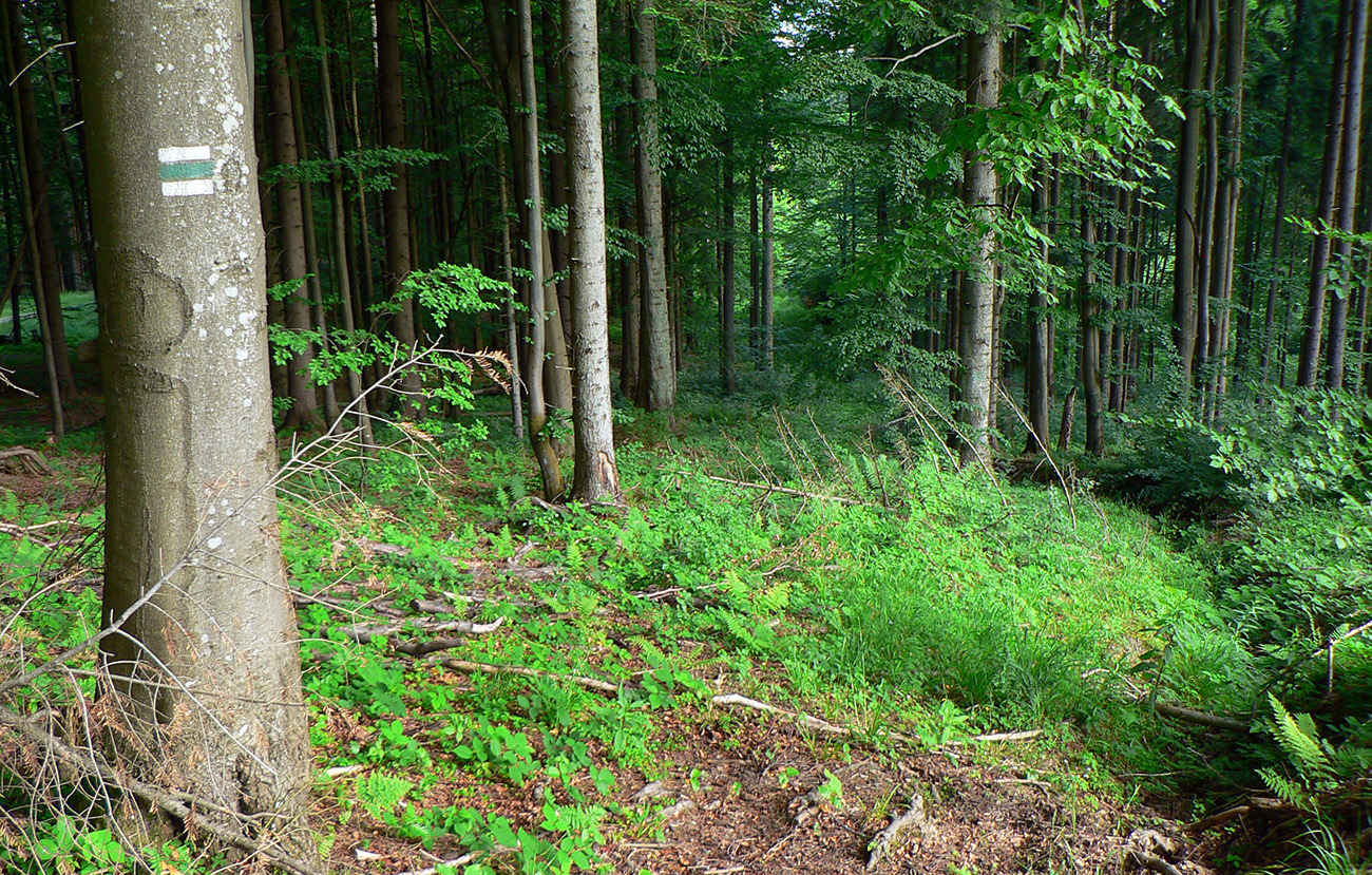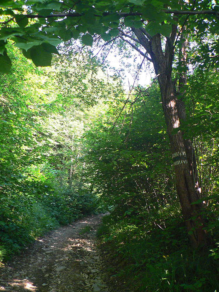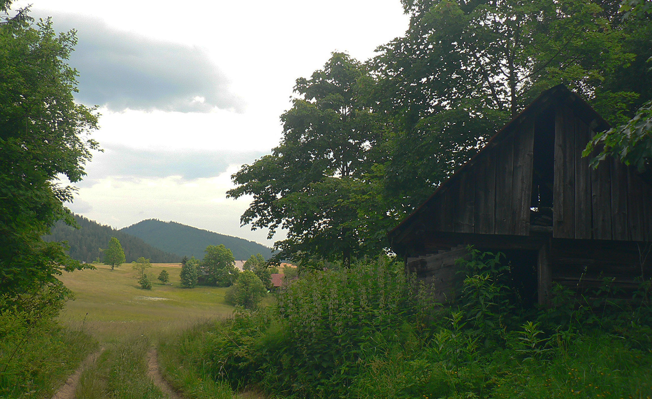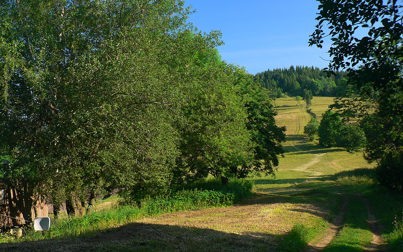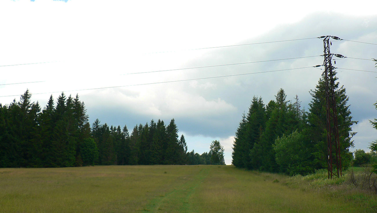 Nasleduje orientačná výzva – treba sa síce len držať okraja lesa po ľavej ruke, po pravej hučí hlavná cesta, ale značiek poriedko a navyše sú staré a vyblednuté. Navyše celý tento úsek začína cez rampu – ako niekomu do dvora. Až som sa obzeral, či ma niekto nepríde zahnať :-) Potom už komfortne po pasienkoch až na Kubínsku. Tadeto už ozaj asi nik nechodí, za Kubínskou na krátkom úseku ani chodník nie je prechodený na tých miestach, kde je tráva vyššia. Potom ale už značka zlezie na šotolinovú cestu a po tej už v pohode až na Jamy.
