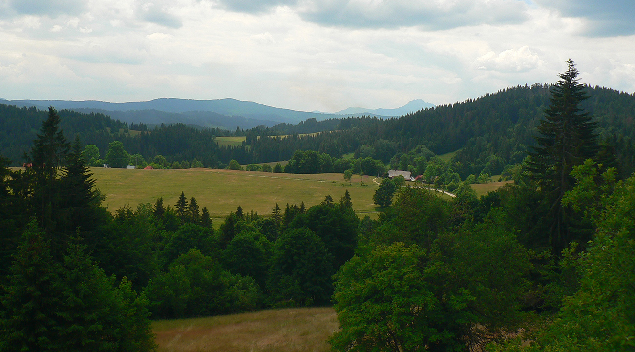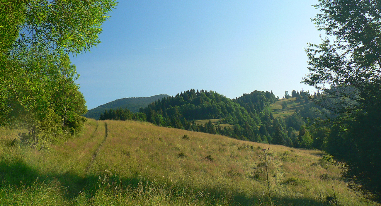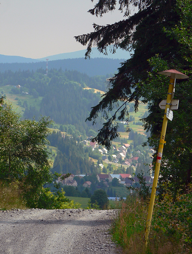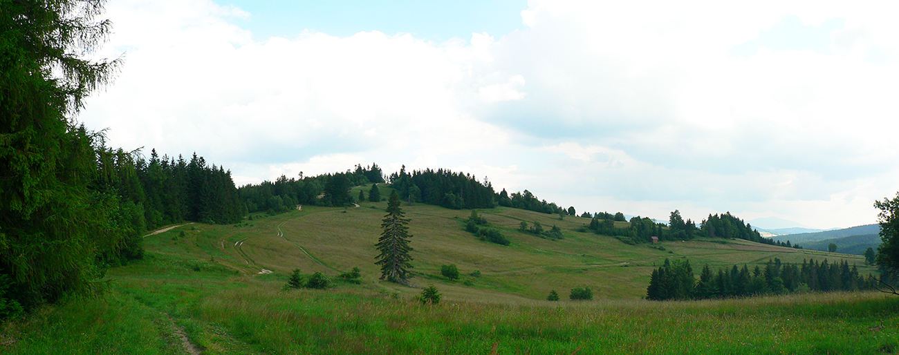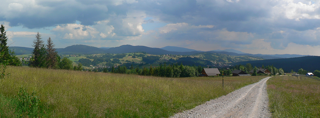 Ako sa chodník opäť dvihne do stúpania, zmení sa k lepšiemu. Začnú sa objavovať lúky, ciest je odrazu niekde až moc (a niektoré poriadne rozjazdené). Pribudnú výhľady na blízke osady aj vzdialené Piľsko a Babiu horu. Za vysielačom na Macangovom Beskyde sa otvorí aj panoráma Oravskej Lesnej. Smerom dole ešte trochu po lúkach a potom už asfaltka na vyšný koniec Oravskej Lesnej (miestna časť Beskyd).