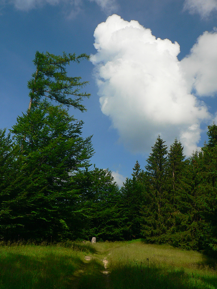 Úvod zo Zázrivej je pekný, aj keď strmý – treba sa popri cintoríne vyštverať po lúkach až pod les a potom lesom stále strmšie na Javorinku. Ovečky, trávička, panorámy (najmä Rozsutcov) v pozadí, zázrivské cholvarky všade naokolo, no paráda. Ten les potom už nič extra – vyjazdená zvážnica sa rýchlo mení na vymletý chodník, viac stôp po besných motorkároch ako po turistoch a pod vrcholom ešte preliezky, ktoré tu nechala snehová kalamita spred dvoch rokov.