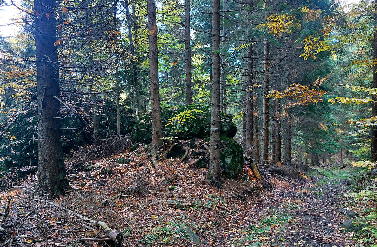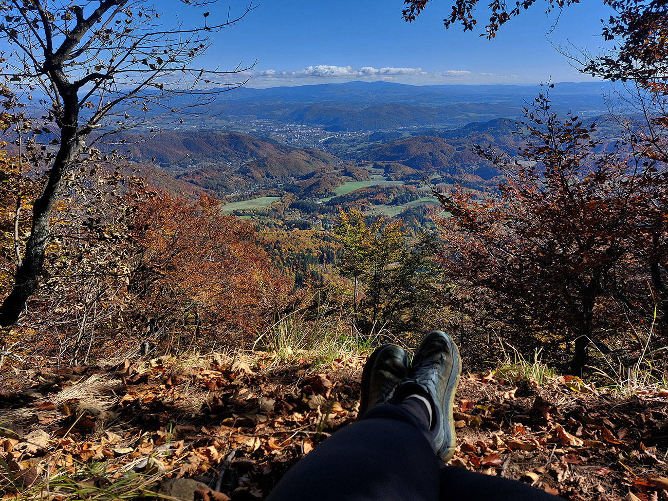 Potom smerom hore na hrebeň krátky a strmý choďák, dobrý na zmenu stereotypu. Zopár kratších chodeckých miest je samozrejme aj na hrebeni, až po Flochovú, pomedzi ne plno pekných lokalít, ako bralká pri chodníku, vyhliadky na Bystricu, samotný tunel a tak... A konečne slnko do chrbta, lebo také októbrovo nízke v tej prvej časti trochu otravovalo :-)