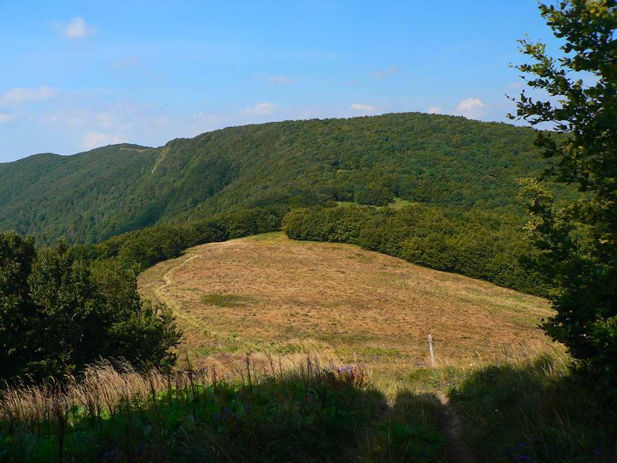 Na Kruhliak sa štveráme strmým svahom, aby sme ešte strmším z neho začali zostupovať do Ruského sedla. Cestou dole je jedna lúka s pekným výhľadom na odlesnenú pramennú kotlinku Cirochy, kam smerujeme. Potom už strmý zostup po hranici, ktorá tu bola asi voľakedy ostro strážená. Usudzujeme tak podľa podivných tvarov povrchu - valov a jám všade okolo.