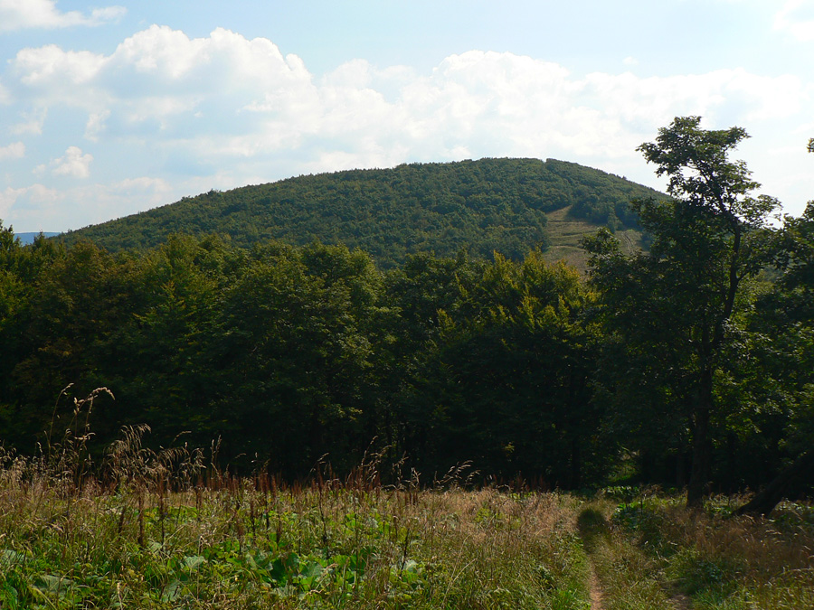 Ďurkovec, najkrajší dnešný vyhliadkový kopec, je neďaleko a prichádzame tam akurát vo vhodnom čase na obed, tak okupujeme jedinú vrcholovú lavičku a pasieme sa znovu, tentokrát z vlastných zásob. Od vrcholu vyráža na juh bočná rázsocha Veľkého Bukovca, ktorá oddeľuje kotlinu Sedlice od kotliny Runiny - do tej sa odteraz budeme pozerať, tam chceme zajtra skončiť.