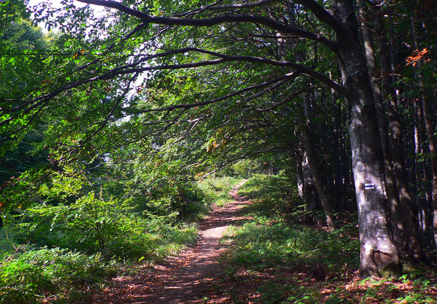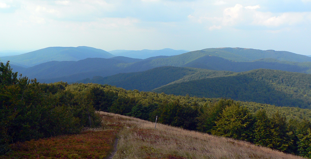 Zato nás čaká pekný deň, striedavo v tieni lesa a na poloninách s výhľadmi. A čučoriedkami :-) Ideme cez Borsukov vrch, Čelo, Jarabú skalu, Ďurkovec, Pľašu a Kruhliak do Ruského sedla. Tam je ďalšie oficiálne táborisko. Necelých 20km a šesť hodín, ale nabalenému na ťažko je to tak akurát. Aby to bolo na pohodu.