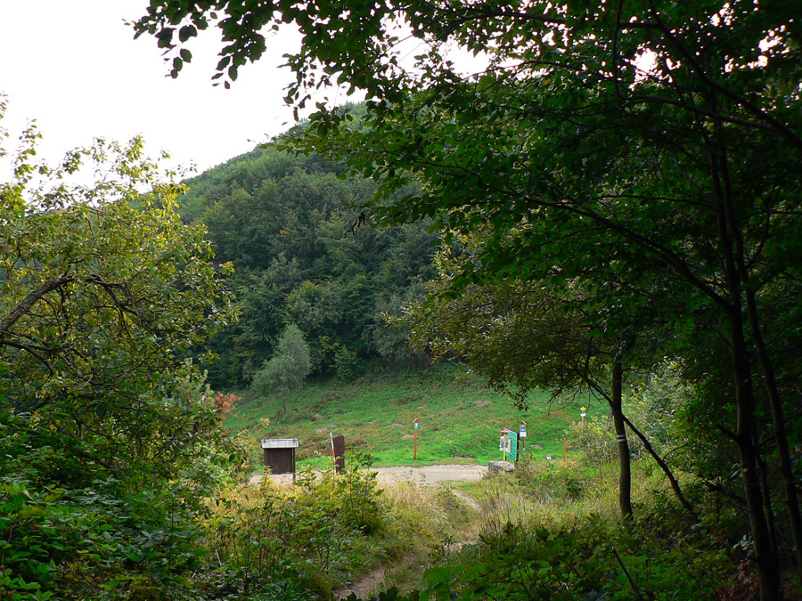 Fialoví až za ušami sa posúvame ďalej. Na konci lúky pod stromami je ďalší „unifikovaný“ poľský prístrešok, rovnaký ako pod Čierťažou. Na Jarabú skalu je to neďaleko.