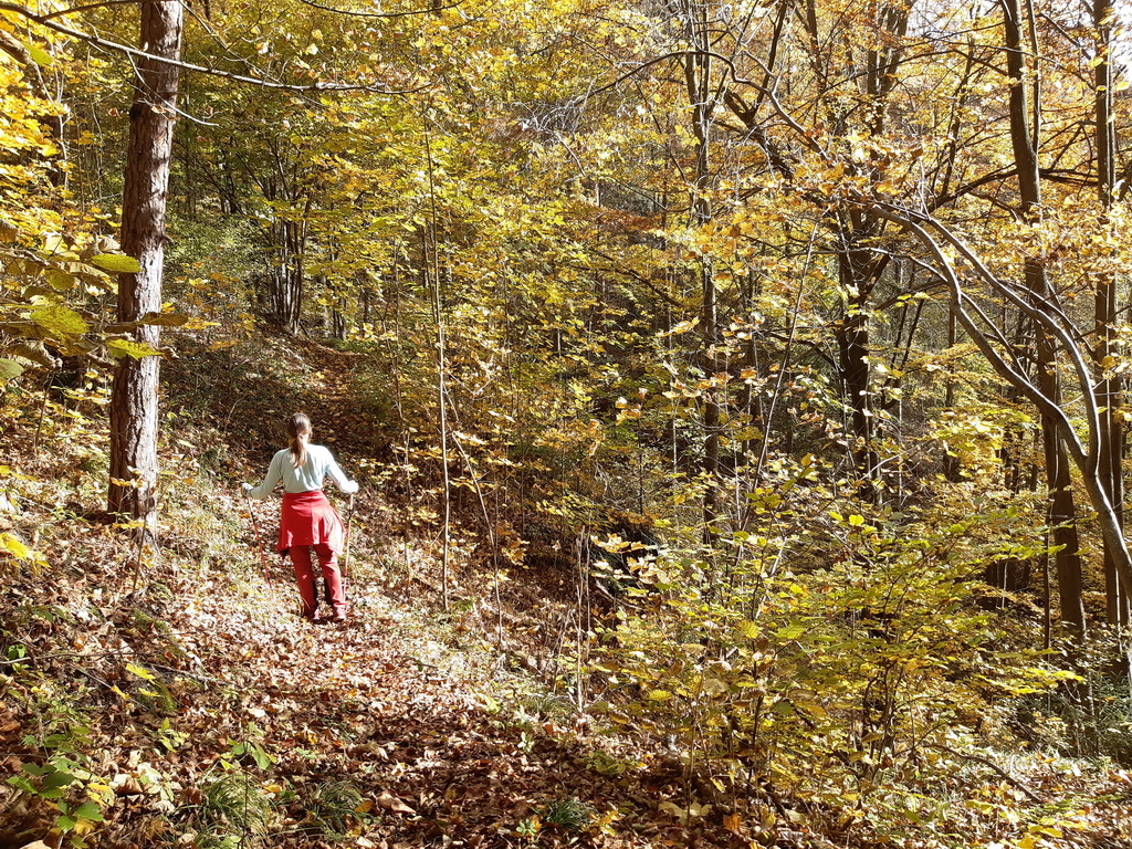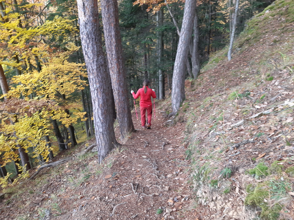 Výhľady sú znásobené farbami jesene. Túto časť traverzu už poznáme detailnejšie. Nielen z prechádzok ale aj zo sedla horského bicykla. Parádny fitnes okruh ukončujeme ešte malou zachádzkou okolo jazierka ktoré je len kúsok od auta na Visovej. Veľa ľudí chodí okolo ale nie každý o ňom vie.