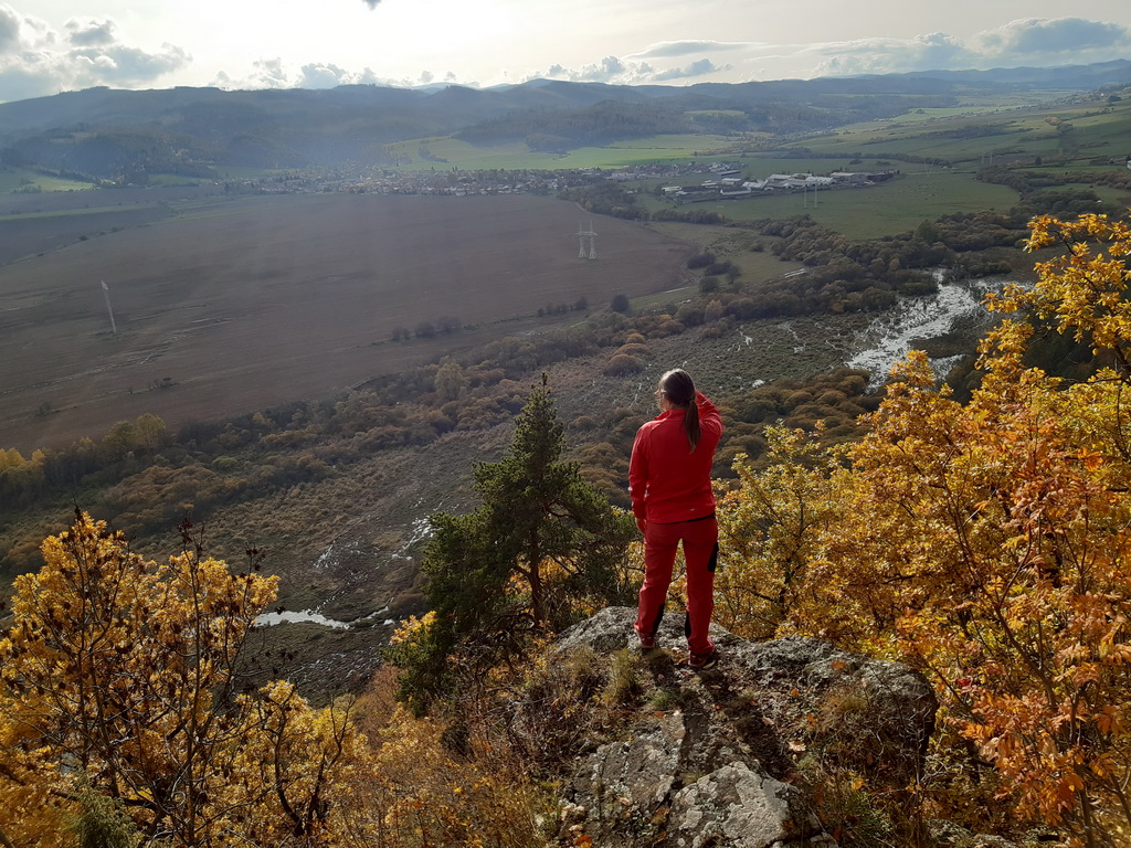 Od auta vyrážame po širokej štrkovej lesnej ceste celkom nedávno rozšafne vďaka eurofondom zmodernizovanej do slušných rozmerov. Po pár kilometroch prídeme ku rázcestníku kde začína spomínaná zelená náučná značka. Odbočujeme vpravo, kúsok po lúke a vnárame sa do lesa. Zo zelenej značky ešte raz zídeme dole aby sme za chatkou s názvom Zelená žabka konečne našli vyhliadku na skale. Už dlhšie sme si to tu obchádzali kým sme sa dostali až na ňu.