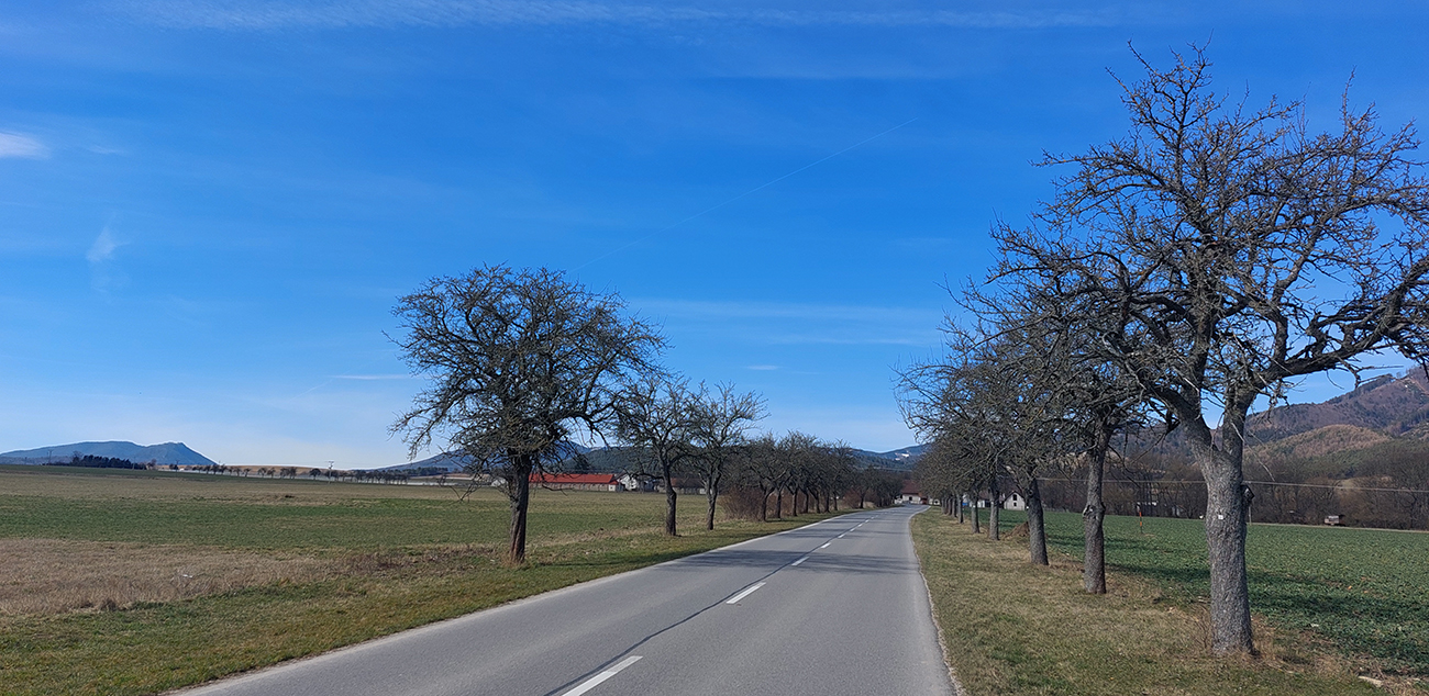 Potom mi je cestou do Sučian trochu smutno, lebo vidím, ako za obeť ľudskej hlúposti padá jedna pekná, stará aleja, zrejme bez náhrady. Aj tu sme sto rokov za opicami – stačí sa ísť pozrieť na Moravu, tam je to už opačne. Už ma trochu pichá za krkom, ešte je telo nezvyknuté na takéto polohy. A kvôli časovkárskej geometrii tej mojej kosačky ma viac bolia ruky ako nohy, ale ešte je to pohoda.