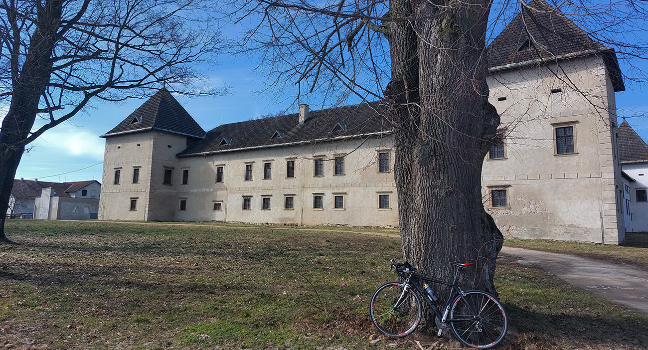 Pred Dolnou Štubňou sa úspešne napájam na mne dokonale známu cestu s hrubým asfaltom, kde viem, že ku koncu budem musieť obísť pár jám, ale to je pohoda. Hlavne sa konečne otáčam k slnku a vetríku chrbtom, začínam sa vracať domov a pre zmenu musím často brzdiť, ako sa mi fičák opiera do chrbta. Aby som to mal správne historicky – etnografické, cez Diviaky sa premotávam tiež malou sľučkou popri Platthyovskom kaštieli. Priamo na odbočke k nemu je ďalší kaštieľ (Tarnóczyovský), prerobený na hotel, keby čosi: