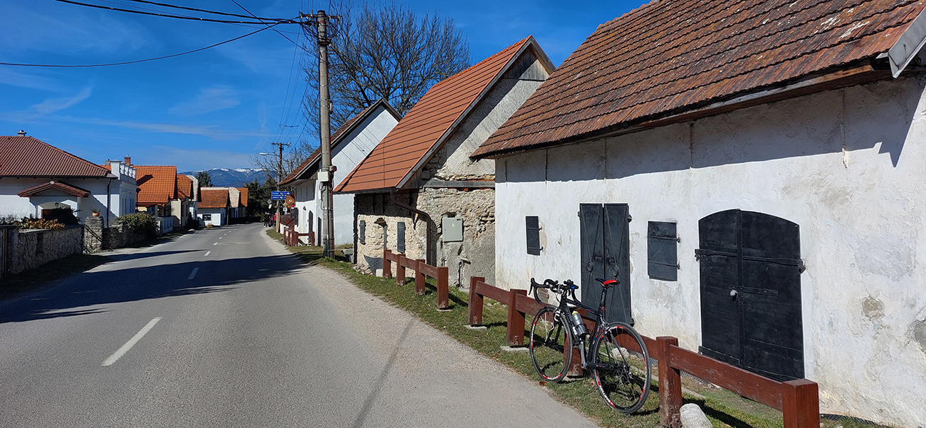 Prvé odvážne muchy, asi ešte trochu dezorientované, sa mi otĺkajú o prilbu. Prejazd Blatnicou nie je ani tak o kaštieli (aj keď pri jednom odbočujem), ale skôr o pekných, zachovaných a zrekonštruovaných olejkárskych domoch a ich sýpkach naproti cez cestu: