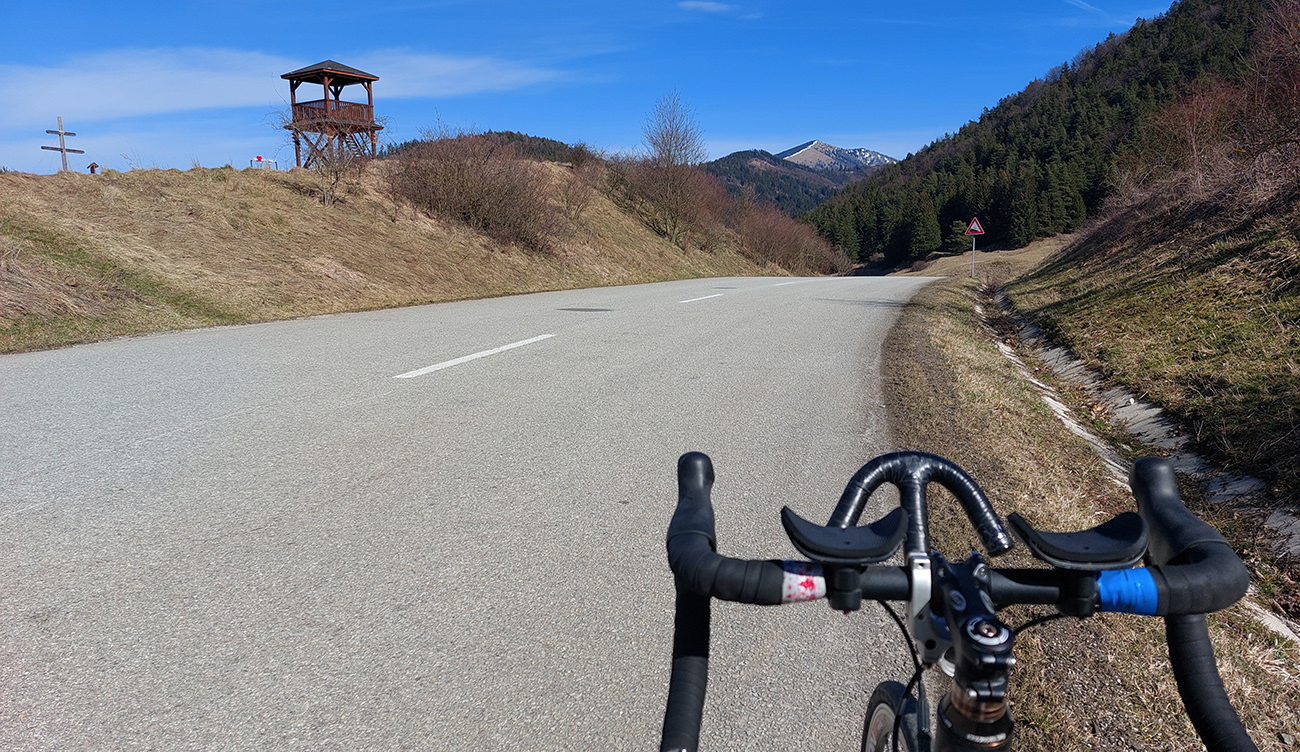 Za Blatnicou najkrajšia časť cesty SNP, okorenená hradom, Tlstou, Pekárovou, novým asfaltom, ale doprznená zase jedným takým suburbánnym Hlupákovom v Sebeslavciach. Krajina stále taká predjarne sivá, ale nebo vpredu už zoslivkovelo a onedlho sa štverám v ústrety Lyscu a prvej cyklorozhľadni, akých tu zopár vyrástlo len pred pár rokmi. Tam to žije, okolo cesty plno áut.