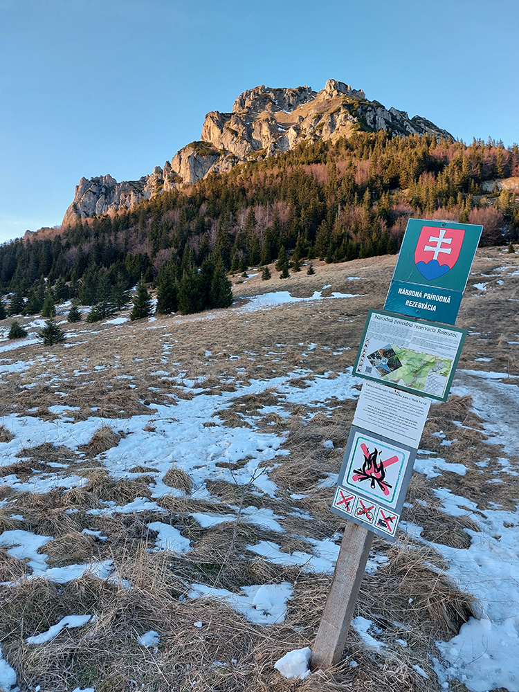 Malý Rozsutec nasvietený a výstupová stena suchá, ide sa hore, keď už sme tu. Samozrejme v tieňoch aj ľady pod nohami, ale dalo sa aj bez mňaukania. Skôr zubami poriadne škrípali tí, ktorí mačky vytiahli vyvenčiť sa. Dokonalú vrcholovú panorámu netreba predstavovať, akurát hlavný cieľ dňa sme mali priamo v protislnku.
