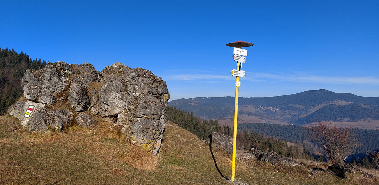 Strmina hore lesom pod Malý Rozsutec je spestrená početnými skalnými vežami a bralami – ale najmä niekoľkými vyhliadkovými plošinkami pre upokojenie pľúc a potechu očí. K Veľkému Rozsutcu sa stále odvážnejšie pridáva Stoh a na východe nesmelo vystrkuje svoj nos Choč. Svieti aj guľa meteoradaru na Kubínke: