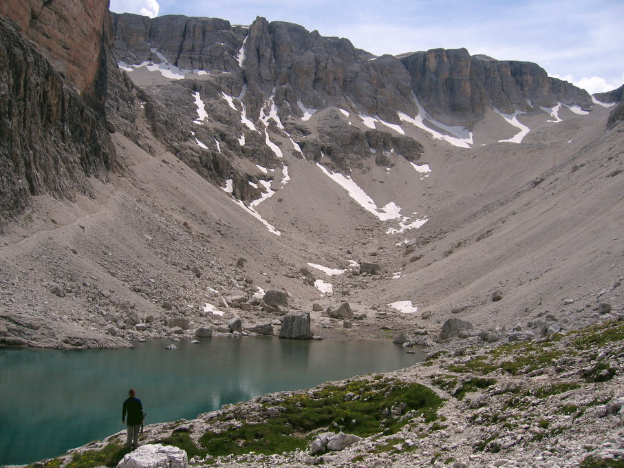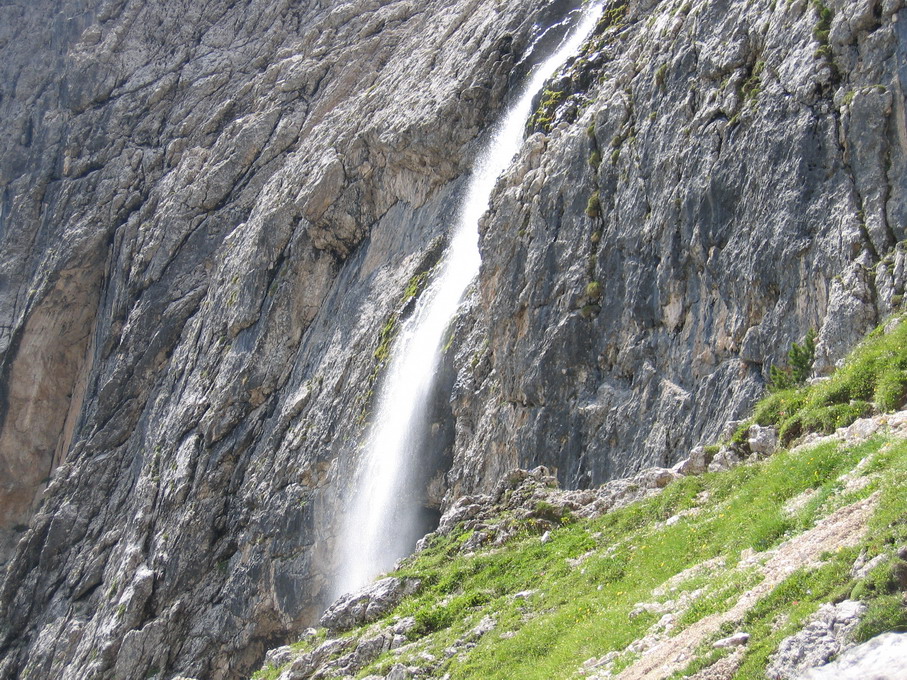 Po jeho prekonaní sa turistickým chodníkom dostaneme k chate F.Cavazza al Pisciadú 2587m. Najkratší zostup späť k autu vedie cez dolinku Val Setus. V hornej časti doliny sú reťaze, ináč je zostup vcelku bezproblémový. Pre tých, ktorí sa ocitnú pri chate ešte v dobrom čase môžem odporučiť výstup na Pisciadúspitze 2985m. Prípadne zostup cez Val Mezdi a návrat traverzom popod vodopád. Všetko po dobre značkovaných chodníkoch.