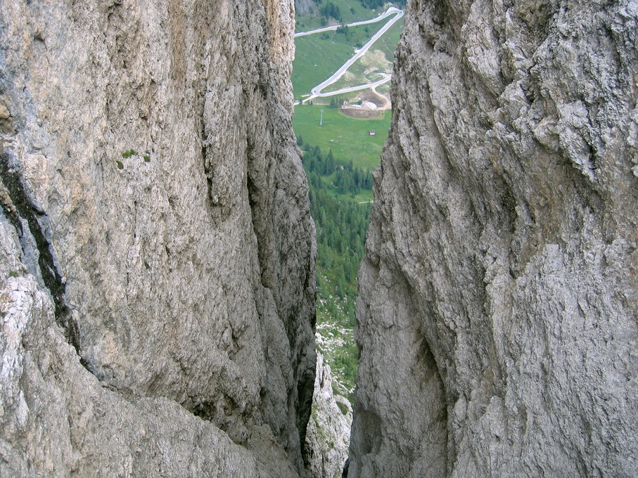 PRÍSTUP: Z Corvary cestou na passo Gardena, asi v strede stúpania odbočiť vľavo na veľké štrkové parkovisko - výrazná tabuľa